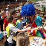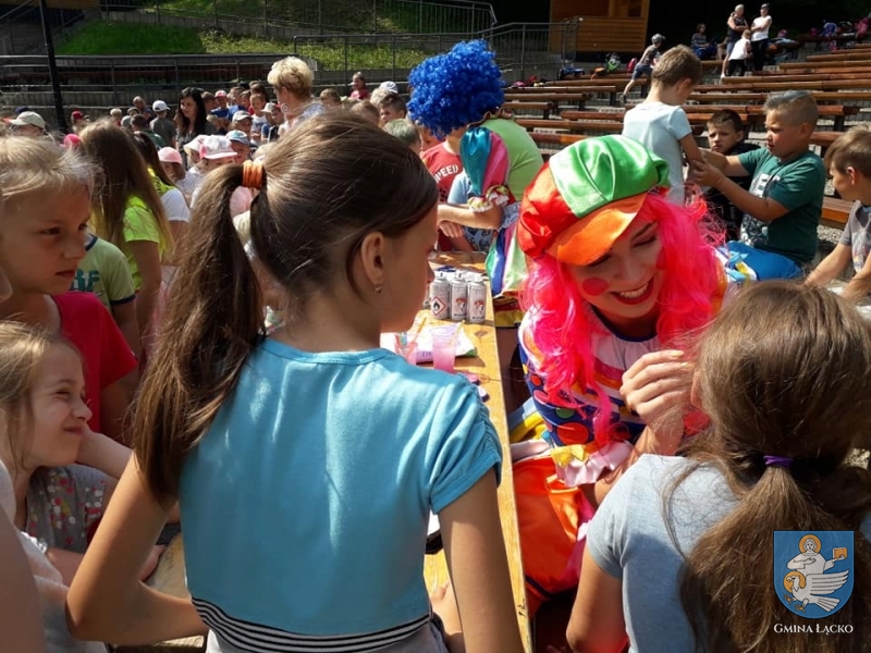 Dopisywała piękna pogoda i doskonałe humory. Do zabaw prowadziły dzieci przesympatyczne Panie Klaun. Zapewniono również wiele atrakcji takich jak: dmuchany zamek dla najmłodszych, wodne tatuaże, malowanie twarzy i kolorowanie włosów.