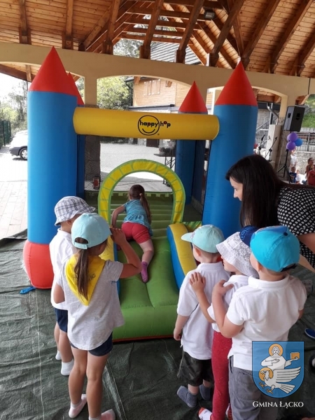 Na początek życzenia wszystkim dzieciom złożył Jan Dziedzina Wójt Gminy Łącko. A potem nadszedł czas wspaniałej zabawy, przy muzyce i piosenkach, które dzieci doskonale znały. Nie zabrakło różnorakich konkursów z nagrodami dla najlepszych.
