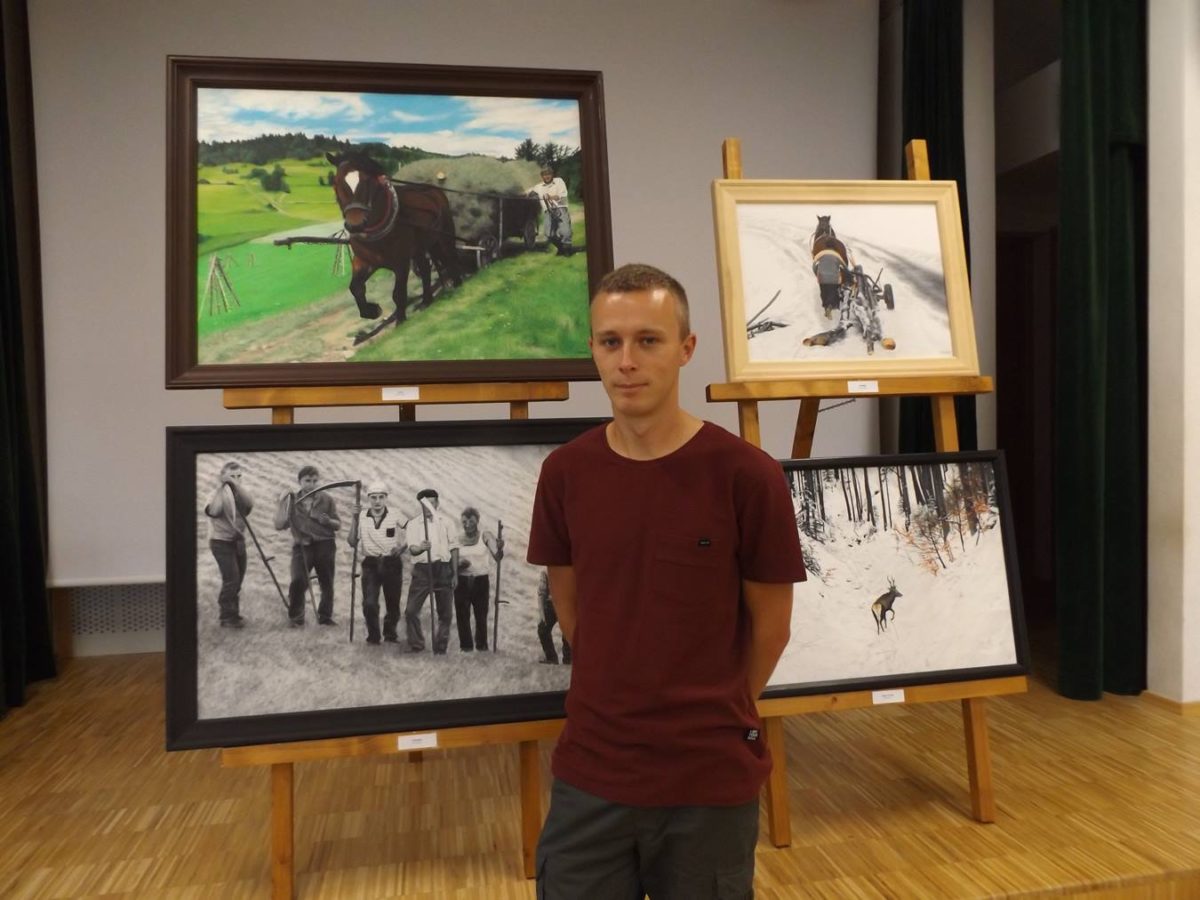 Wystawa składa się z obrazów olejnych i pastelowych, które przedstawiają chwile z życia zwykłych ludzi pracujących na roli i w lesie, rodzinę artysty, a także obrazy o tematyce religijnej.