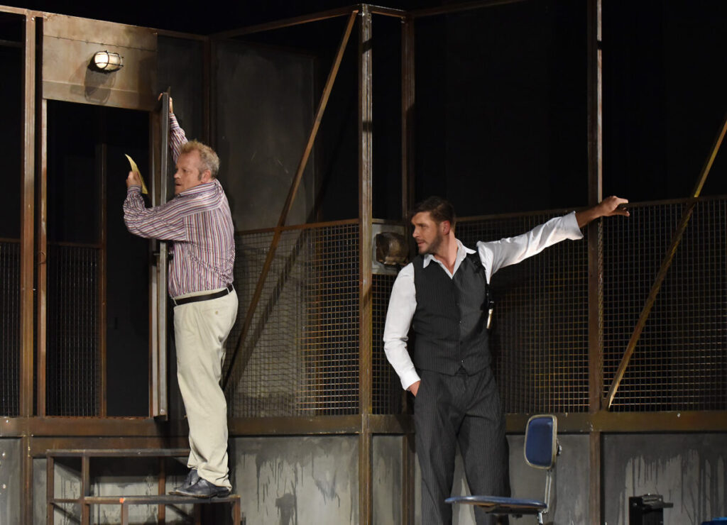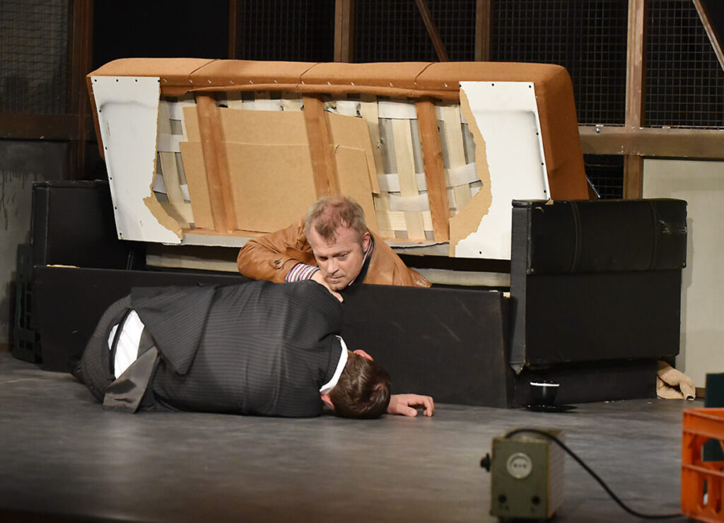 Dwóch specjalistów od „mokrej roboty” w pomieszczeniu bez okien czekało na kolejne zlecenie od „kogoś na górze”. „Jest coraz gorzej” – powiedział nie bez powodu jeden z nich. Atmosfera stopniowo gęstniała od napięcia, rozterek, oczekiwań, fobii, marzeń i złudnej logiki, które wymykały się konwencjonalnym regułom gry, tak samo jak autentyczna gra aktorów. Widzowie mogli doświadczyć jak bardzo irytuje wspólnik w zamkniętych czterech ścianach, gdzie drugi „zabija jak pająk”. Mieli też okazję przekonać się gdzie jest granica pomiędzy prawdą a kłamstwem, dobrem i złem i jak daleko można ją przesuwać. Na nowo zdefiniowane zostało pojęcie lojalności. W bardzo oszczędnym języku otrzymaliśmy niezmiernie skondensowany przekaz. „Jesteś czysty, bo utrzymujesz świat w czystości” – pokrzepia jeden drugiego.