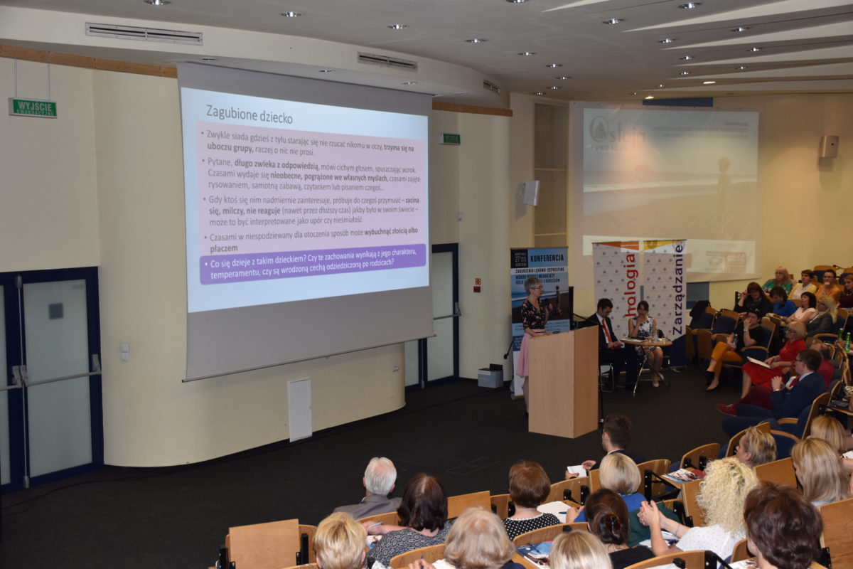 Wśród prelegentów nie zabrakło również psycholog Aleksandry Karasowskiej, która niemal co roku dzieli się swoim doświadczeniem podczas konferencji organizowanych przez Fundację Ostoja. Swój wykład poświęciła dzieciom, które są mocno wycofane, i podpowiadała nauczycielom, jak je wspierać, by zaczęły komunikować się ze światem zewnętrznym. Te dzieci bowiem, z powodu zalęknienia uciekają w swój własny świat, który stwarza im iluzję bezpieczeństwa.