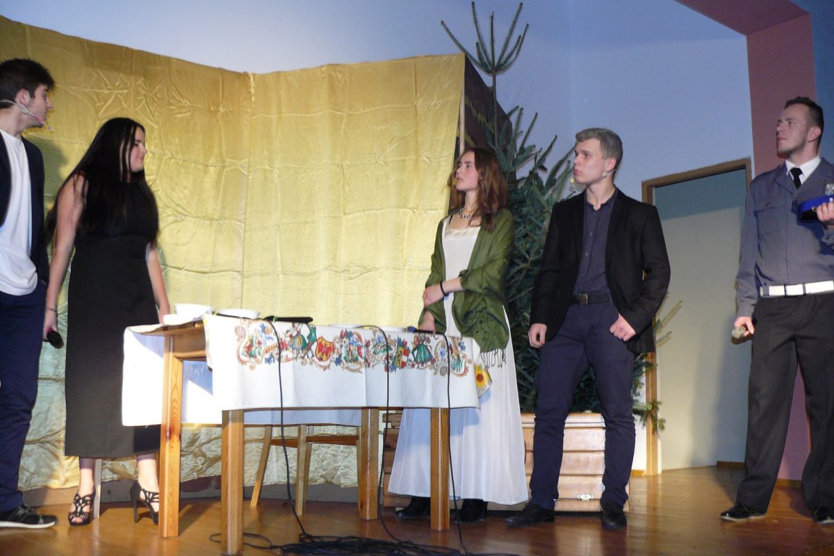 W przedstawieniu wystąpili: Maciej Trzciński, Marek Jakubowski, Agata Koszkul-Gomułka, Jan Rejowski, Łukasz Mazurkiewicz, Małgorzata Ogorzały, Elżbieta Wilczyńska, Wiesława Kantor, Józefa Sadowska, Kinga Tyliszczak, Klaudia Krupa, Paweł Soboń, Katarzyna Sadowska, Michał Barnach i Kamil Gryźlak. Przedstawienie zostało przyjęte bardzo ciepło a aktorzy obdarowani gromkimi brawami.
