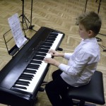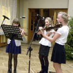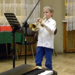 Na początek zaprezentowali się słuchacze Ogniska Muzycznego w Łącku. Ci najmłodsi wykonawcy zostali nagrodzeni gromkimi oklaskami. Jako pierwsi wystąpili uczniowie klasy skrzypiec pod kierunkiem p. Agaty Pańszczyk, następni pianiści z klasy p. Mariusza Gorczowskiego, trębacze z klasy p. Marka Lipienia oraz gitarzyści przygotowani przez p. Piotra Matusiewicza. Gościnnie zagrały również absolwentki Ogniska Muzycznego, a aktualnie uczennice klasy skrzypiec p. Krzysztofa Michalika w Samorządowej Szkole Muzycznej I st. w Łącku.