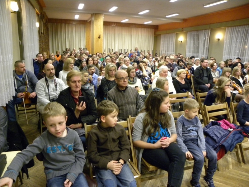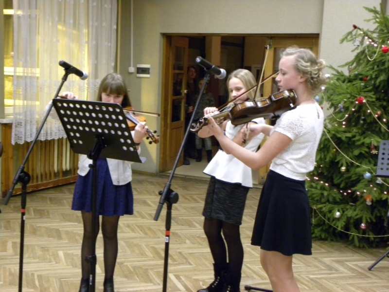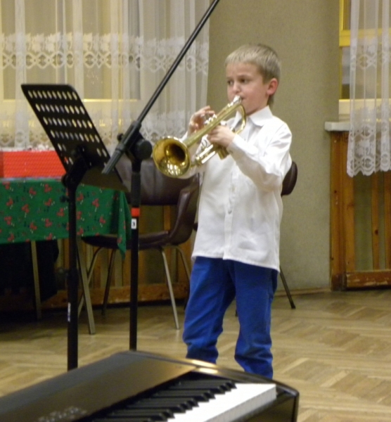 Na początek zaprezentowali się słuchacze Ogniska Muzycznego w Łącku. Ci najmłodsi wykonawcy zostali nagrodzeni gromkimi oklaskami. Jako pierwsi wystąpili uczniowie klasy skrzypiec pod kierunkiem p. Agaty Pańszczyk, następni pianiści z klasy p. Mariusza Gorczowskiego, trębacze z klasy p. Marka Lipienia oraz gitarzyści przygotowani przez p. Piotra Matusiewicza. Gościnnie zagrały również absolwentki Ogniska Muzycznego, a aktualnie uczennice klasy skrzypiec p. Krzysztofa Michalika w Samorządowej Szkole Muzycznej I st. w Łącku.