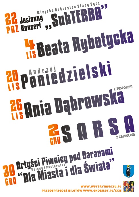 Jeszcze w październiku (22.X) długo oczekiwane wydarzenie; jesienny, galowy koncert Miejskiej Orkiestry Stary Sącz pod dyrekcją Georga Weissa, z tytułowym, wykonywanym po raz pierwszy w Polsce utworem „SubTerra” (w wolnym tłumaczeniu „pod ziemią”) Daniela Weinbergera. Ale to dopiero początek.