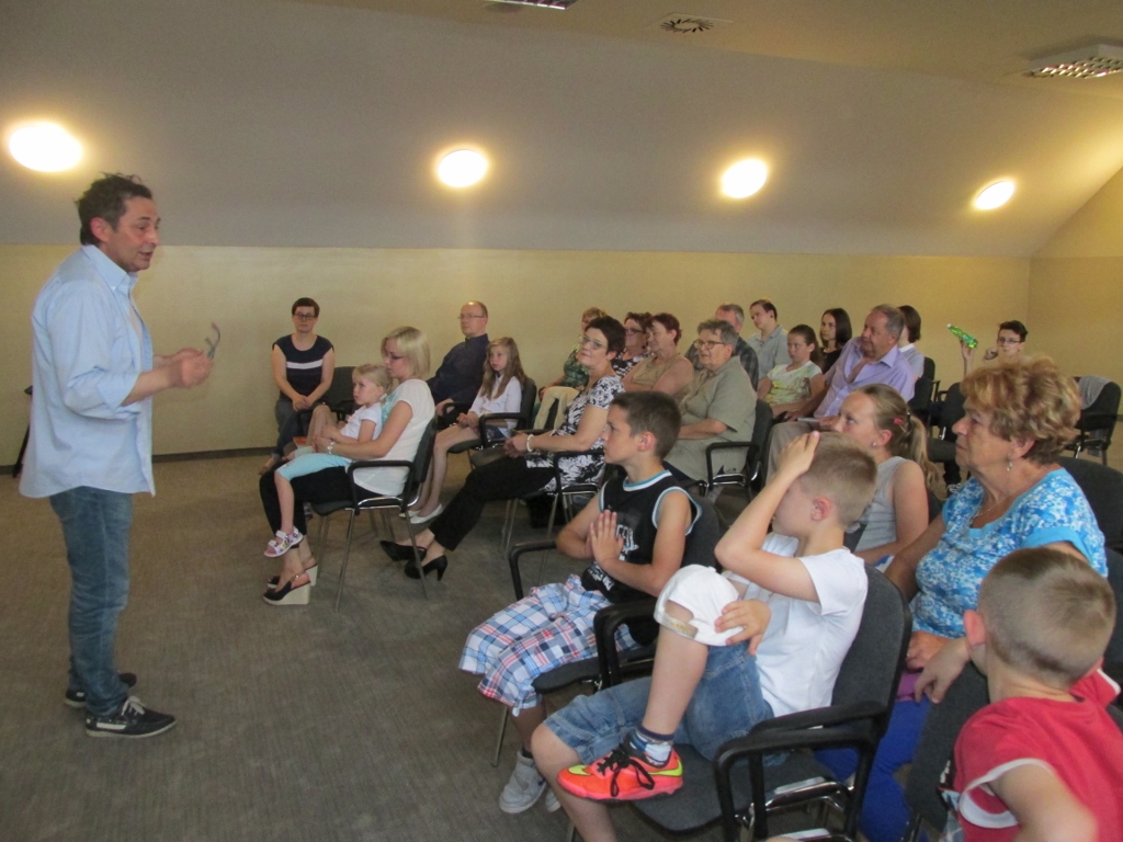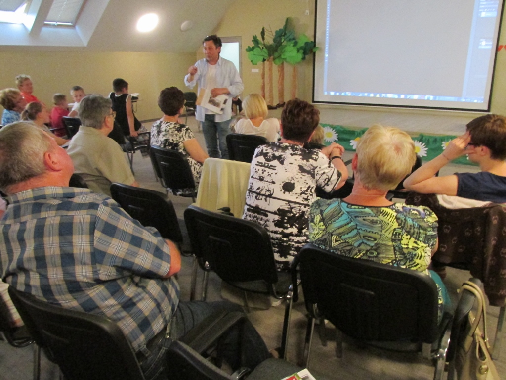 31 maja odbyło się pierwsze spotkanie w Bibliotece Gminnej, w trakcie którego uczestnicy projektu – dziadkowie, babcie i ich wnuki – wzięli udział w warsztatach „Fotografia z dawnych lat”, prowadzonych przez Piotra Droździka. W oparciu o eksponaty oraz prezentację multimedialną poznali różnorodność warsztatu fotograficznego dawniej i dziś. Zajęcia będą inspiracją do przejrzenia archiwów rodzinnych i znalezienia najstarszych zdjęć oraz odkrycia, jakie kryją historie. Ponadto uczestnicy obejrzeli film „Światłoczuły” o Wojciechu Migaczu – fotografie z Gostwicy w gminie Podegrodzie, który zasłynął jako chłopski fotograf sądeckiej wsi. Film i warsztaty wzbudziły duże zainteresowanie wśród wszystkich uczestników, oraz były okazją do ożywionej dyskusji z prowadzącym spotkanie Piotrem Droździkiem, a punktem kulminacyjnym spotkania była międzypokoleniowa sesja fotograficzna w Muzeum Lachów Sądeckich.