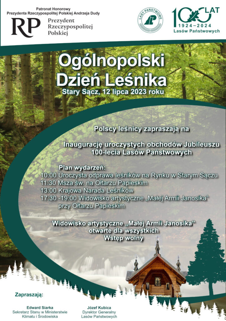 Krajowa Narada Leśników jest okazją do oceny przeszłych lat oraz wypracowania kierunków na przyszłość. Pan Edward Siarka – Sekretarz Stanu w Ministerstwie Środowiska i Klimatu, Pełnomocnik Rządu ds. Leśnictwa i Łowiectwa, Pan Józef Kubica – Dyrektor Generalny Lasów Państwowych oraz Pan Paweł Szczygieł – Dyrektor Regionalnej Dyrekcji Lasów Państwowych w Krakowie serdecznie zapraszają do Starego Sącza na inaugurację obchodów 100-lecia Lasów Państwowych, gdzie 12 lipca 2023 roku rozpoczną się one od Ogólnopolskich Obchodów Dnia Leśnika z udziałem władz państwowych, samorządowych, osób duchownych, przedstawicieli współpracujących podmiotów, instytucji i służb mundurowych oraz leśników z całej Polski.