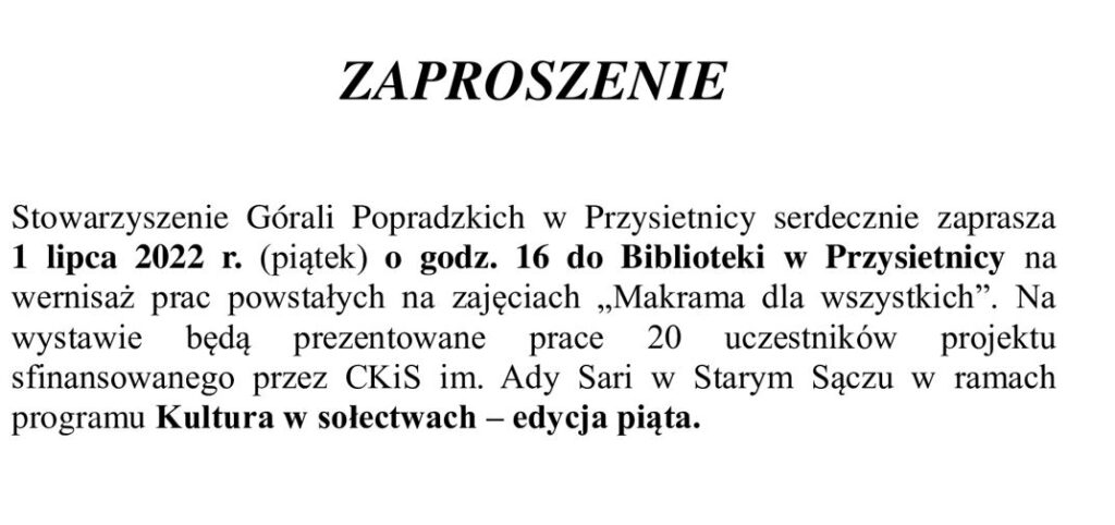 Makrama dla wszystkich. Wernisaż w Przysietnicy