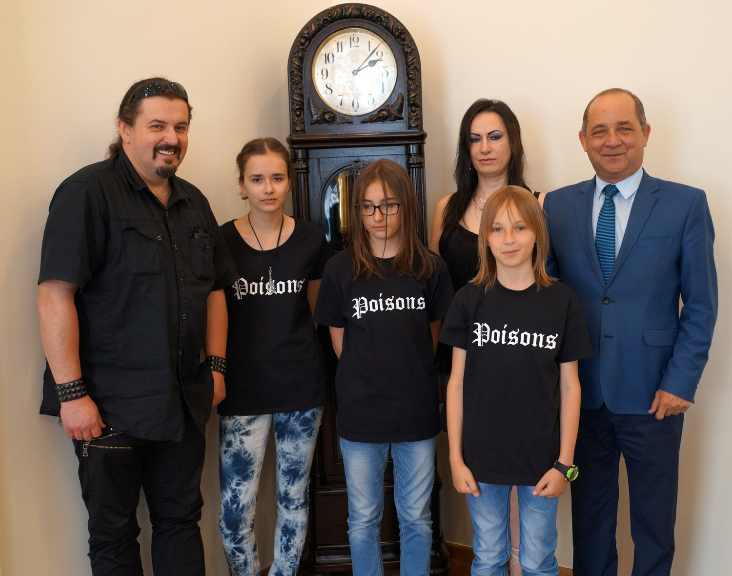 Zespół Poisons, działający przy Powiatowym Młodzieżowym Domu Kultury w Starym Sączu odwiedził dziś starostę nowosądeckiego Marka Pławiaka. Muzycy wręczyli gospodarzowi powiatu swoją płytę pt. „Ucieczka”. – Pan starosta jest naszym wiernym fanem – podkreśla Ricardo Gołąb, autor tekstów i manager zespołu.