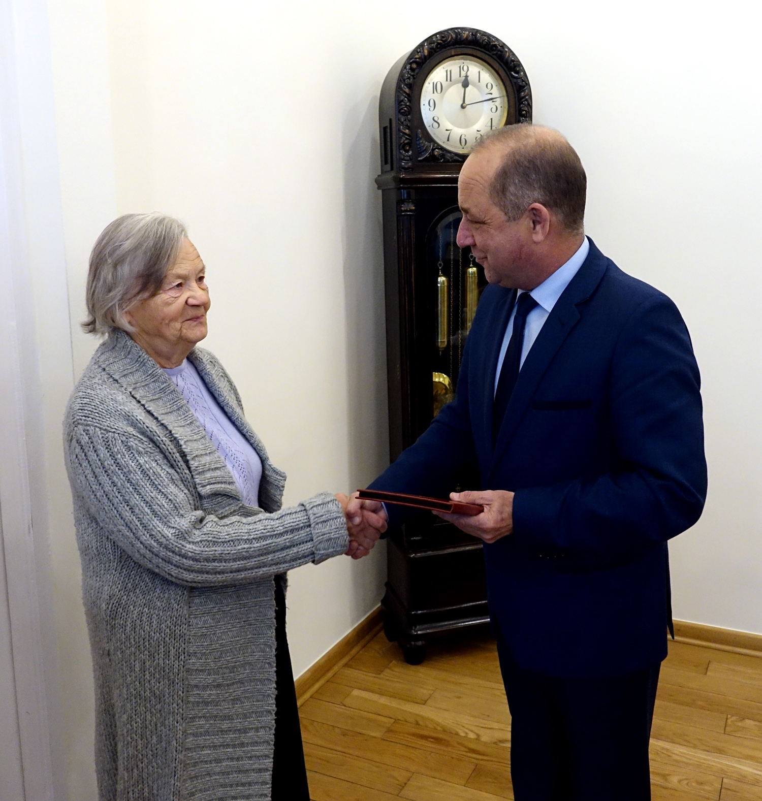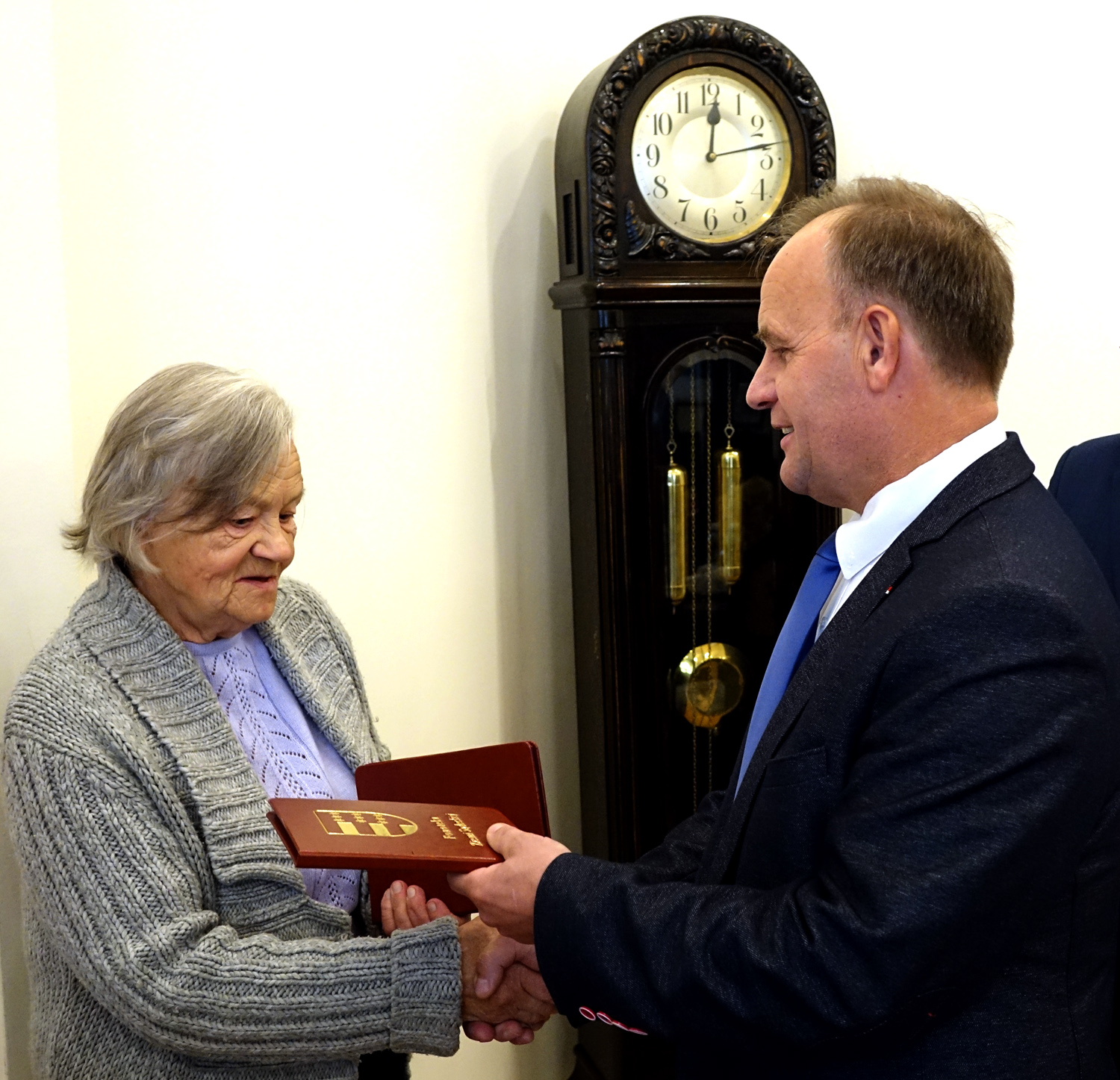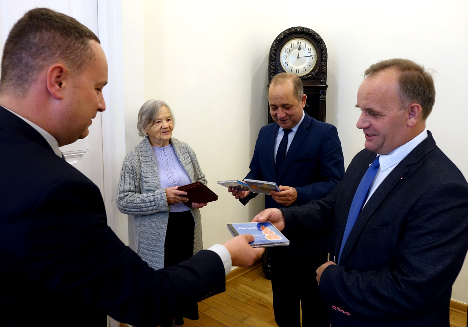Zespół Regionalny „Mystkowianie” i Mali Mystkowianie” powstał w z inicjatywy Hanny i Benedykta Porębów i to właśnie oni otrzymali dzisiaj z rąk starostów płyty „matki” oraz po 100 nagranych płyt z kolędami i pastorałkami.