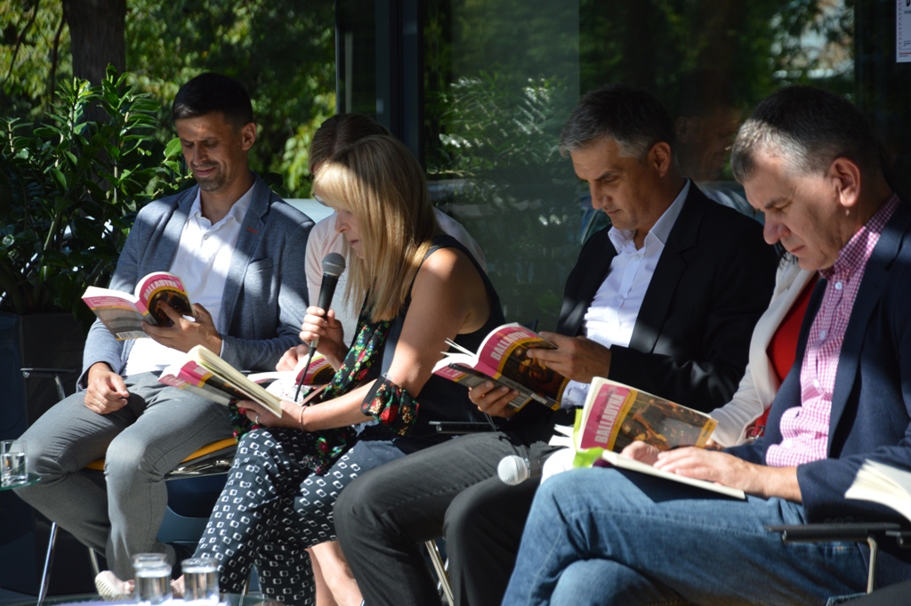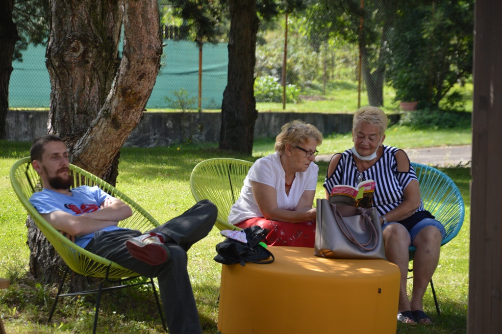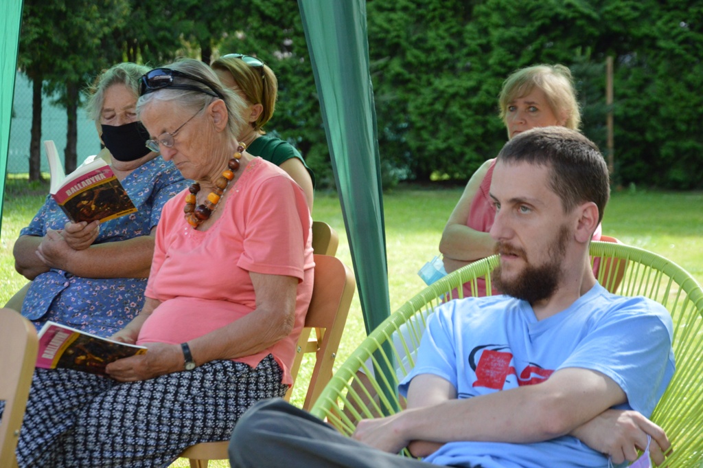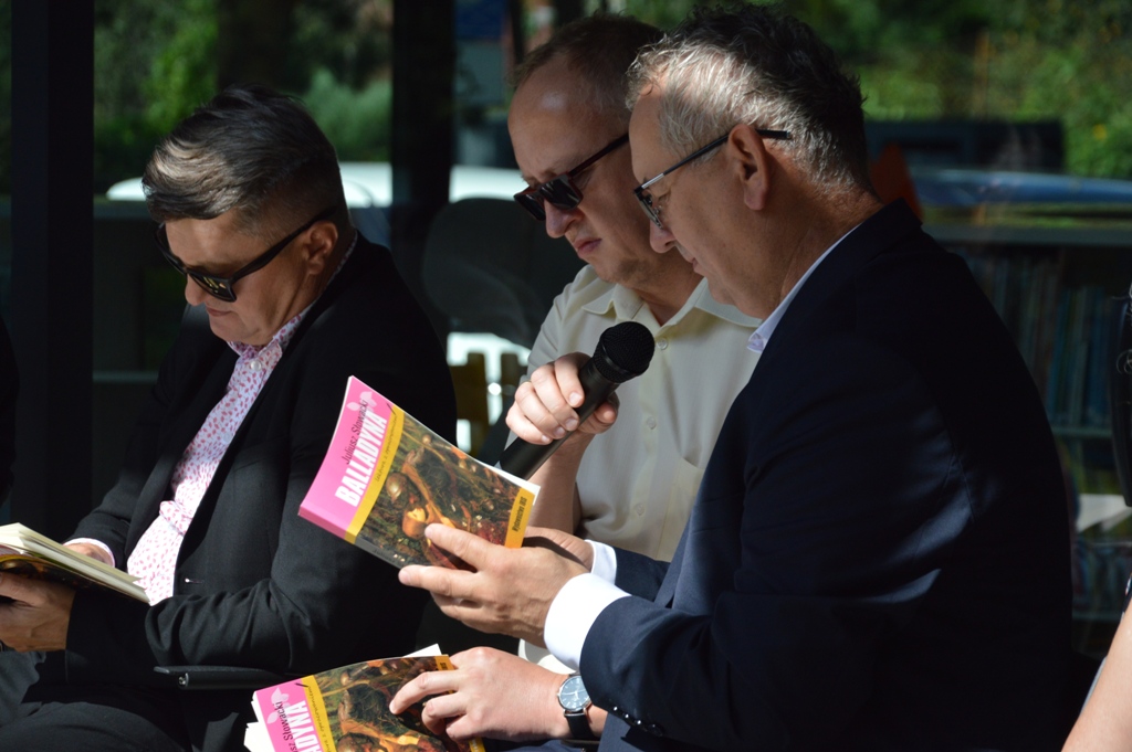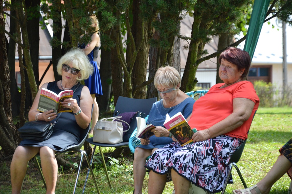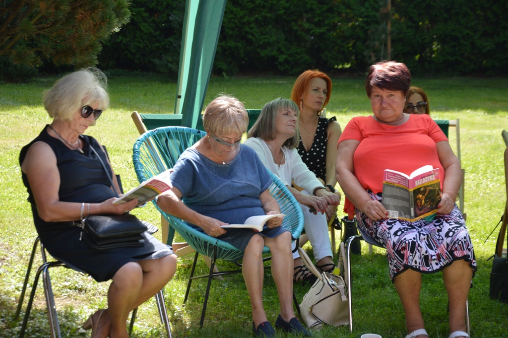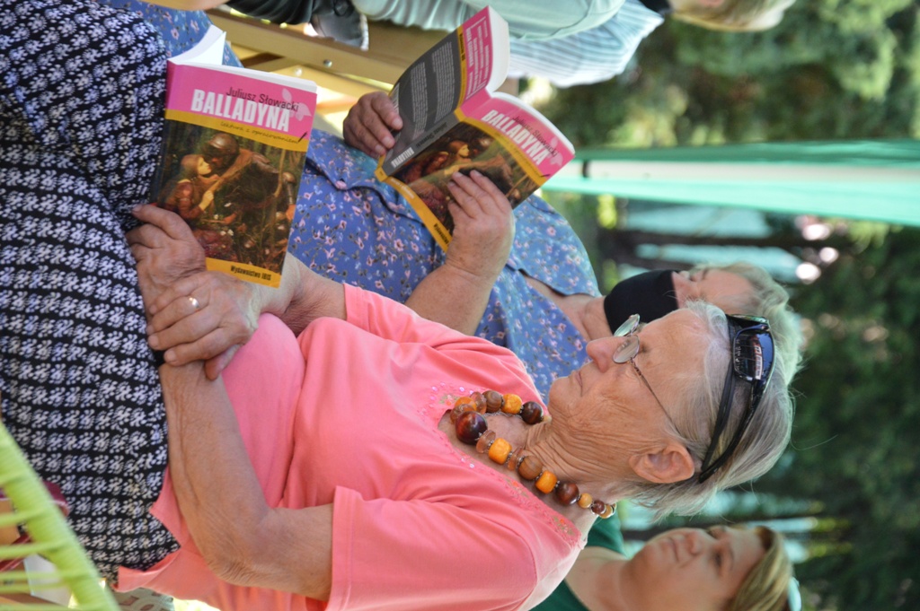 Natomiast w Starym Sączu w pięknych ogrodach starosądeckiej Powiatowej i Miejsko-Gminnej Biblioteki Publicznej „Balladynę czytali: Wojciech Lasek z Gniazda (Juliusza Słowacki) dyrektor ZOFAS Barbara Porębska (Balldadyna), burmistrz Jacek Lelek (Kirkor), zastępca burmistrza Kazimierz Gizicki (Starzec), radny Rady Miejskiej Sławomir Szczepaniak (Goniec, dzieci, śpiew duchów), sekretarz Daniel Śmierciak (Grabiec, Szlachta), radna Julia Dziedzic (Chochlik, Kobieta), poetka Danuta Sułkowska (wdowa), kierownik Środowiskowego Domu Samopomocy Joanna Homoncik (Goplana, Kobieta), Piotr Dyrek (Kostryn, Filon), dyrektor MZGK Ryszard Niejadlik (Pustelnik, Gralon) oraz kierownik OPS Franciszek Tudaj (Skierka). Nad wszystkich czuwała dyrektor biblioteki pani Monika Jackowicz -Nowak.