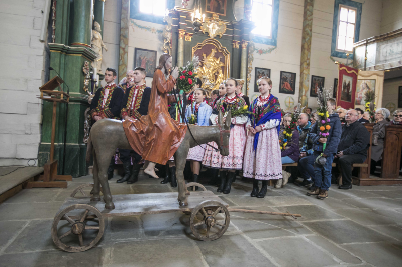 10.30 – Msza święta w kościele pw. św. św. Piotra i Pawła z Łososiny Dolnej z poświęceniem palm oraz uroczystą procesją z figurą Chrystusa na osiołku. Procesję poprowadzi Regionalny Zespół Pieśni i Tańca „Lachy”.