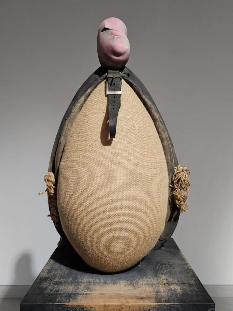 Wystawa  składa się z dwóch odmiennych pod względem formy grup rzeźbiarskich, które jednak łączy wspólny temat. Motyw pielgrzymowania, wędrówki, człowieka, jednostki poszukującej kieruje moją uwagę w stronę nietrwałości, z drugiej  zaś strony jest solidna rzeźba wolnostojąca, przestrzenna oraz płaskorzeźbamówi Ewelina Kochańska, komisarz artystyczny Fascynuje mnie tworzący się w ten sposób dialog trwałości kamienia, metalu i drewna z kruchością istoty ludzkiej, zarówno w sferze materialnej, jak i duchowej. Dobitnym przykładem tej gry znaczeń jest kompozycja „Kody AZ”, która przywodzi na myśl obraz Wróblewskiego „Kolejka trwa”. W obydwu przypadkach została doskonale wyeksponowana lekcja życia, trwałości w nietrwałości, przemijania i wewnętrznego bólu jaki każdy z nas w sobie nosi. Uproszczona kolorystyka, sprowadzająca się do bieli i czerni nie rozprasza odbiorcy w kontemplacji. W poczekalni jest czas na  rozmówienie się  z przeszłością i pytanie o przyszłość. Postawa artystyczna profesora prowadzi go ku wykorzystaniu i przetwarzaniu gotowych już elementów, czyli techniki, którą współcześnie określa się jako upcycling. Pojedyncze przedmioty nie ulegają w ten sposób degradacji, a dzięki ponownemu włączeniu ich w obieg, nadaniu artystycznej formy i treści, my jako odbiorcy sztuki możemy odnajdywać na nowo ich sens i znaczenie.