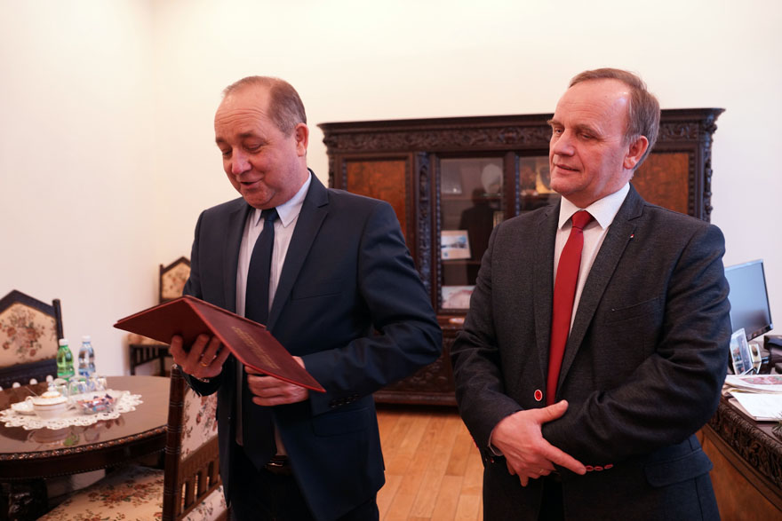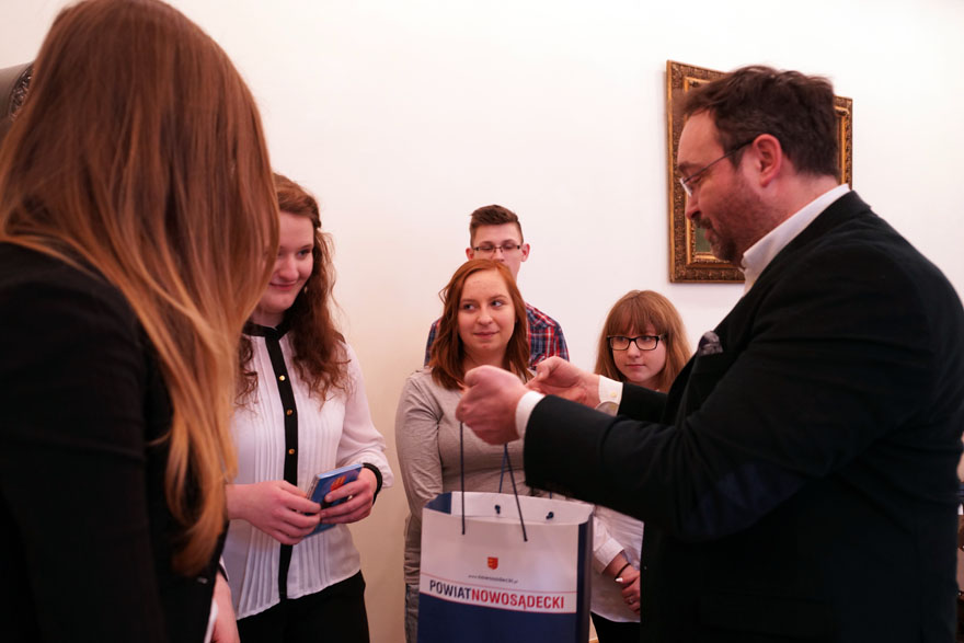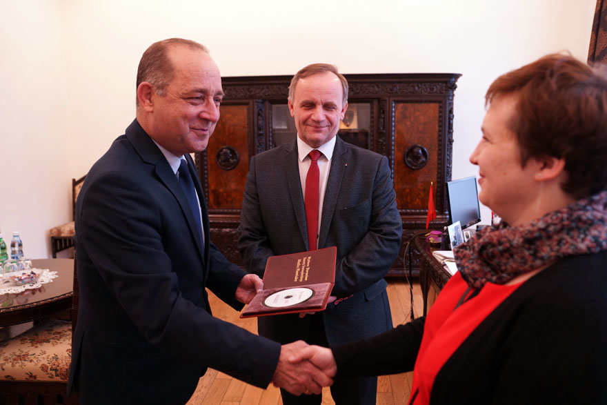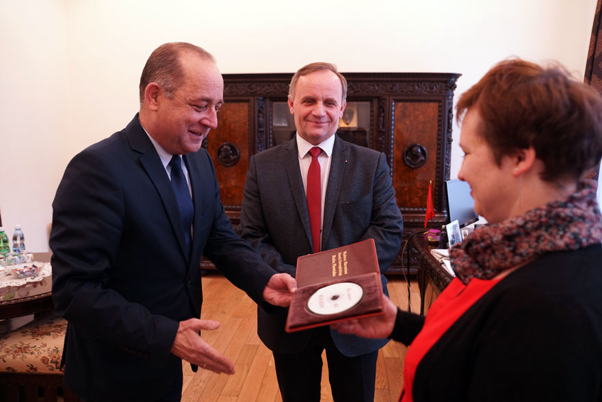 141 płyta nagrana w ramach Fonoteki Powiatowej trafiła dziś do zespołu Pax Christi, działającego przy parafii Najświętszego Ciała i Krwi Pana Jezusa w Brzeznej. Płytę opiekunom zespołu wręczyli starosta nowosądecki Marek Pławiak oraz wicestarosta Antoni Koszyk.