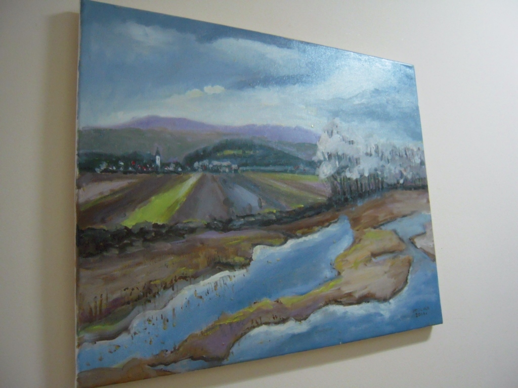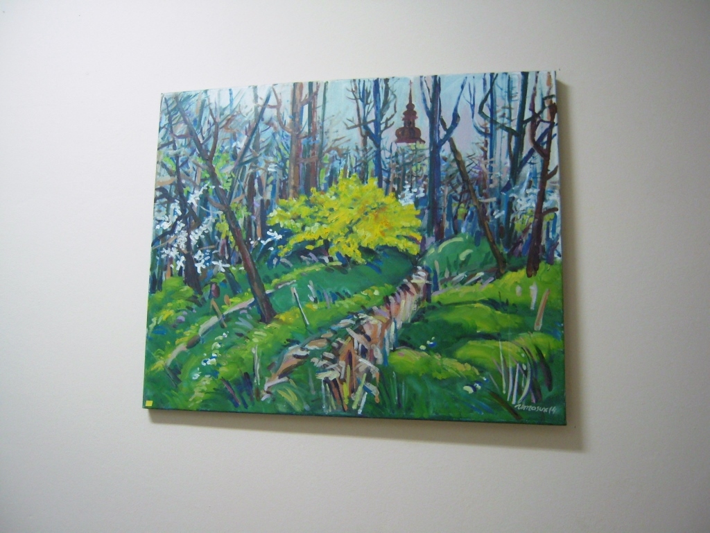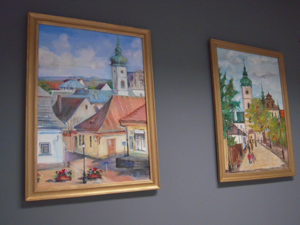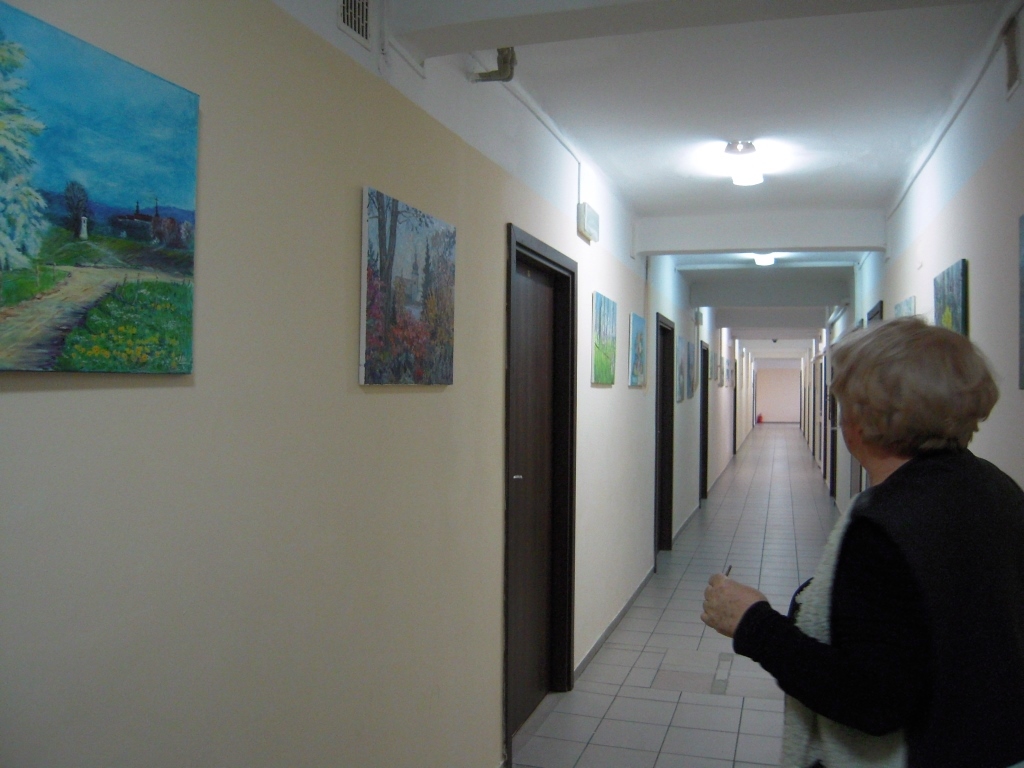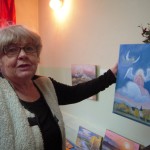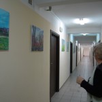 Udaliśmy się także z panią Karoliną na krótki spacer po Internacie w którym znajduje się pokaźna galeria obrazów, które Artyści pozostawiają na pamiątkę swojego pobytu w Starym Sączu. Autorką kilku z nich (fot. 3) jest Artystka, która skończyła 80 lat i bardzo chętnie korzysta z zaproszeń pani Karoliny. W ubiegłym roku gościła także w Starym Sączu.