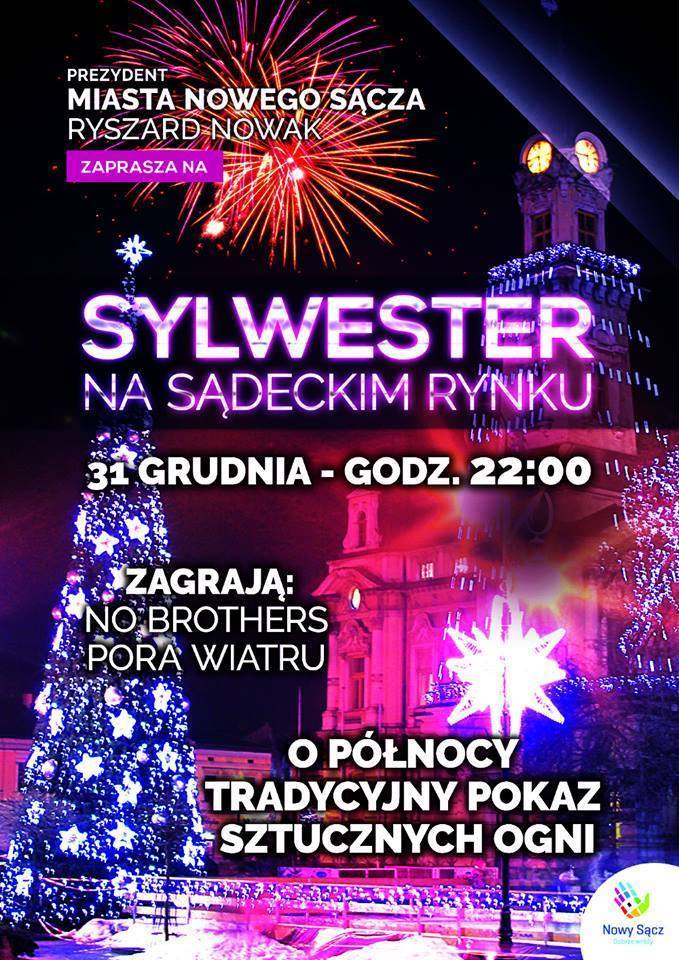 Koncerty zespołów No Brothers i Pora Wiatru, noworoczny toast i pokaz sztucznych ogni – tradycyjnie zapraszamy do spędzenia ostatniej w roku 2015 nocy na sądeckim Rynku. Dużo dobrej muzyki zapewnią finaliści m.in. telewizyjnego programu „Must be the Music” – zespoły No Brothers i Pora Wiatru. Zabawa na sądeckim Rynku rozpocznie się o godz. 22.00