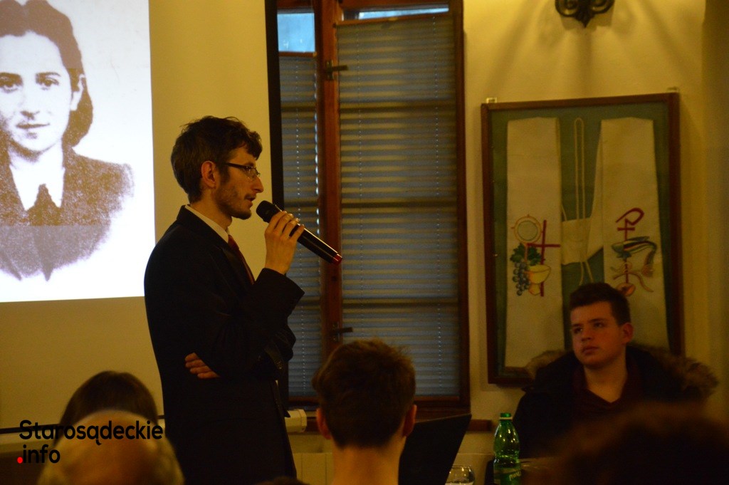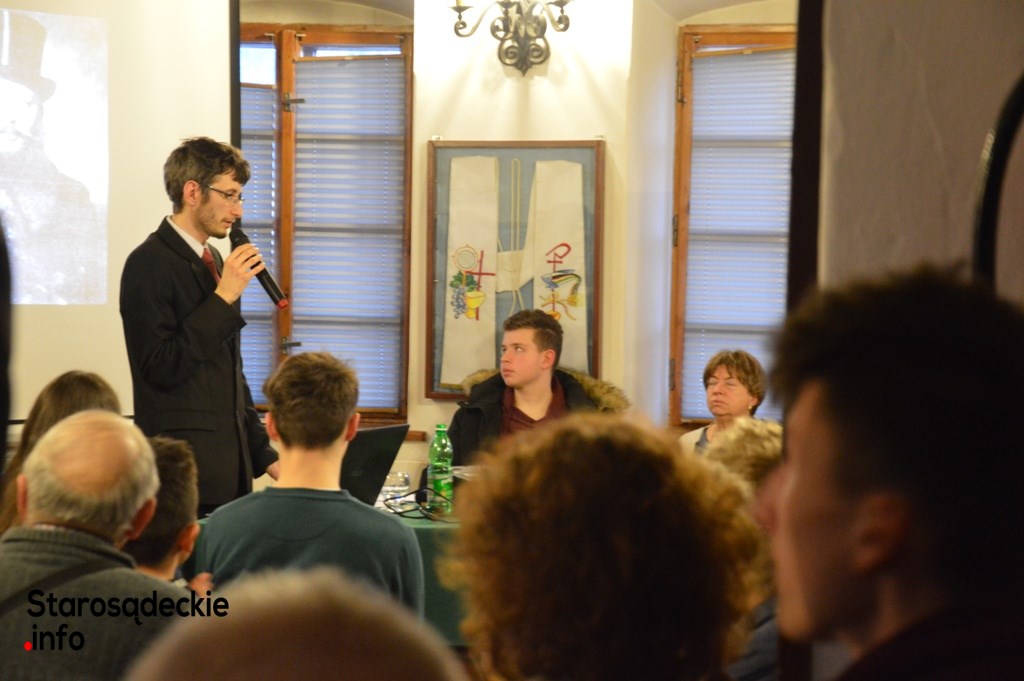 Wykład  dotyczył historii sądeckich Żydów w kontekście relacji z pozostałymi mieszkańcami regionu. Dr Łukasz Połomski odniósł się do dziejów społeczności żydowskiej przedstawiając bogactwo życia religijnego, kulturalnego oraz gospodarczego.  –Przez niemal 5 wieków Żydzi wpisywali się w krajobraz Sądecczyzny -mówił dr Połomski  – Współżycie z ludnością polską układało się różnie: bywały momenty współpracy, ale także pojawiały się różne oskarżenia. Wizerunek Żydów na Sądecczyźnie był budowany na stereotypie, co niewątpliwie do dziś rzutuje na postrzeganie wyznawców judaizmu.