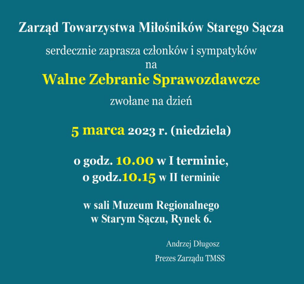 TMSS zaprasza na Walne Zebranie Sprawozdawcze