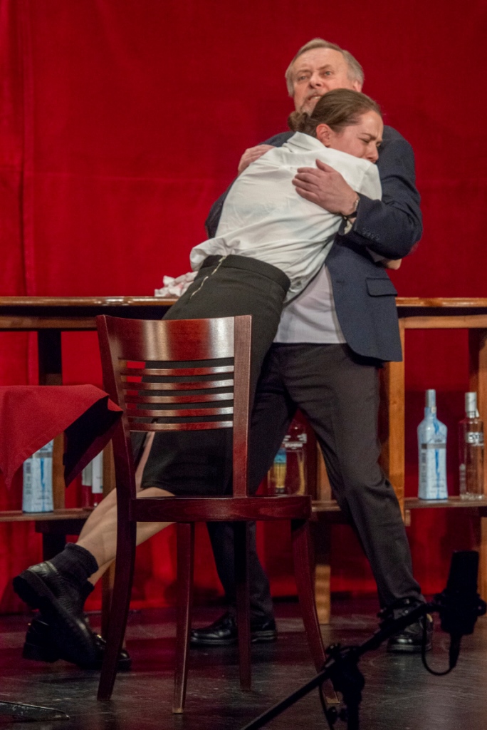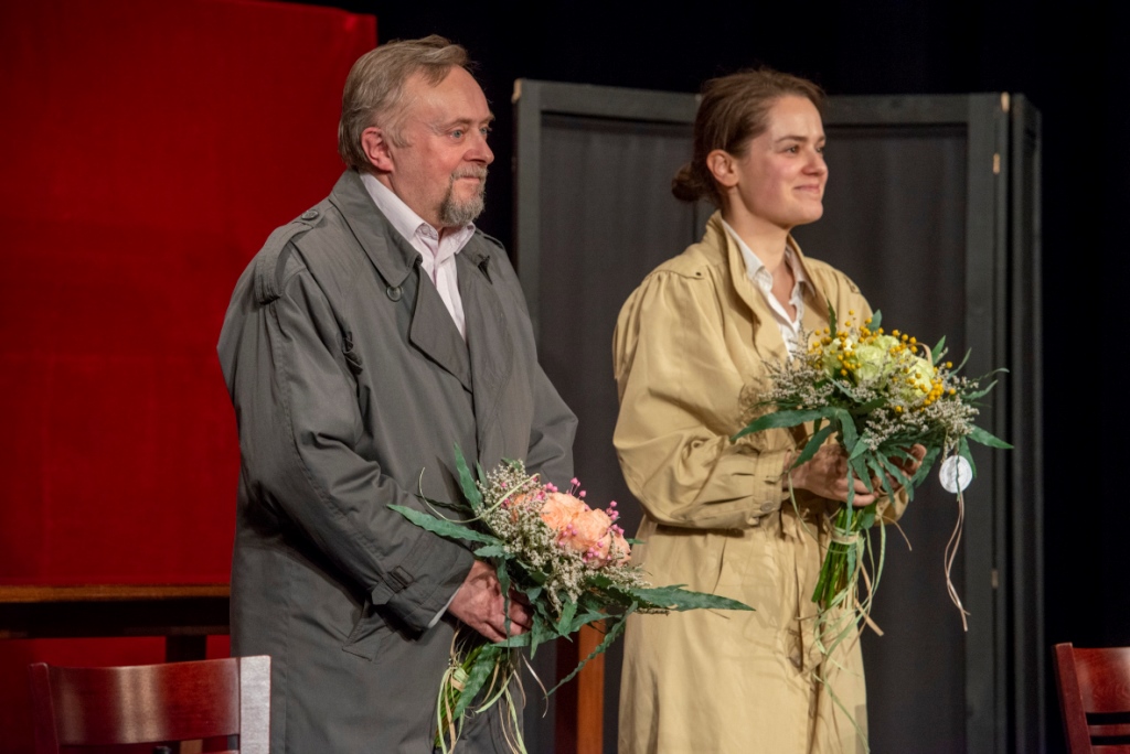 O refleksję po przedstawieniu i jego ocenę poproszona została starosądeczanka Aleksandra: Jako stała bywalczyni Jesiennego Festiwalu Teatralnego cieszę się, że dzisiaj mogłam zobaczyć jego dyrektora w innej roli, co prawda nie pierwszy raz. Spektakl był trudny, wymagał dużej koncentracji, ale bardzo mi się podobał i mam nadzieję, że go zrozumiałam. Było mi łatwiej, ponieważ kiedyś w Teatrze Telewizji widziałam tę sztukę i miałam już swoje przemyślenia. Oczywiście jest to spektakl o miłości i trudnych damsko-męskich relacjach, ale moim zdaniem nie tylko. Dla mnie jest to również sztuka o życiu, w którym tak trudno być sobą. My wszyscy – podobnie jak grający dzisiaj aktorzy – wciąż wcielamy się w różne role. Potrafimy być delikatni, wrażliwi liryczni, ale bywamy też okrutni, banalni, wulgarni. Kiedy patrzyłam na scenę, przypomniały mi się słowa piosenki E. Stachury: „Życie to jest teatr, mówisz ciągle opowiadasz;/ Maski coraz inne, coraz mylne się nakłada;/ wszystko to zabawa, wszystko to jest jedna gra…”