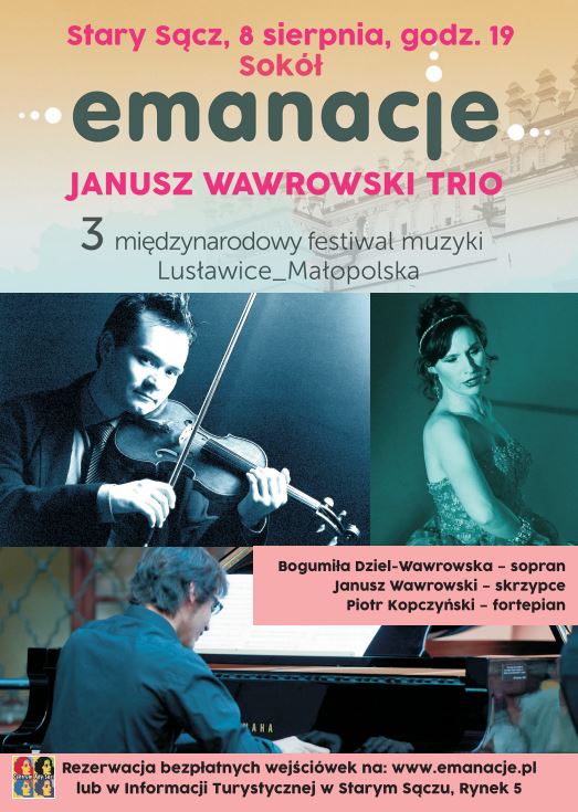 godz. 19:00 Koncert w ramach Festiwalu EMANACJE -Janusz Wawrowski Trio (bezpłatne wejściówki do nabycia w Starym Sączu, Rynek 5 bądź tutaj KLIK)