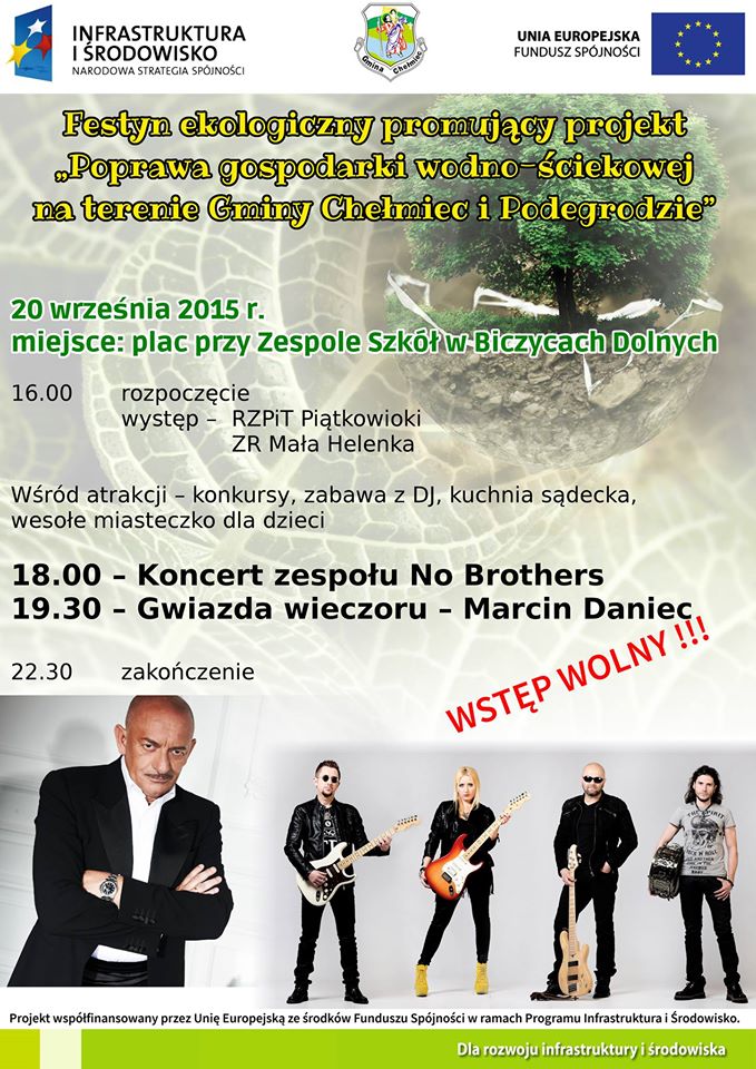 Festyn ekologiczny promujący projekt „Poprawa gospodarki wodno -ściekowej na terenie Gminy Chełmiec i Podegrodzie” Gwiazda wieczoru -Marcin Daniec