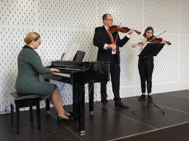 Podczas wernisażu swoje umiejętności instrumentalno – wokalne zaprezentowali uczniowie i nauczyciele ze Szkoły Muzycznej I stopnia w Starym Sączu w repertuarze patriotyczno-ludowym.