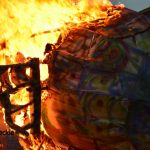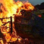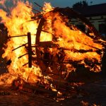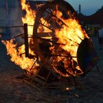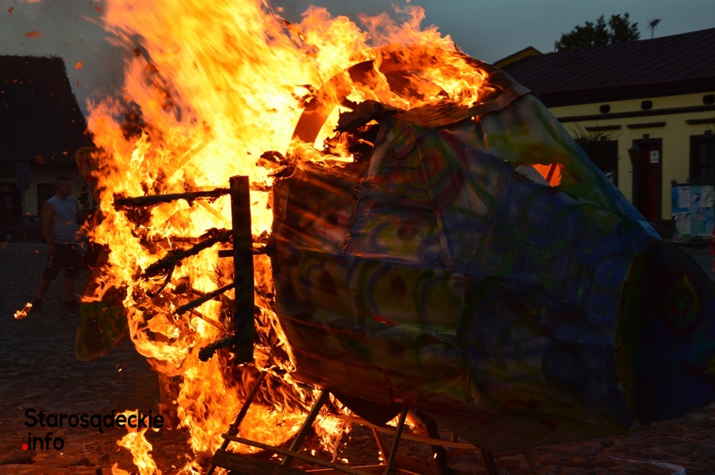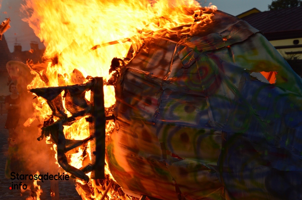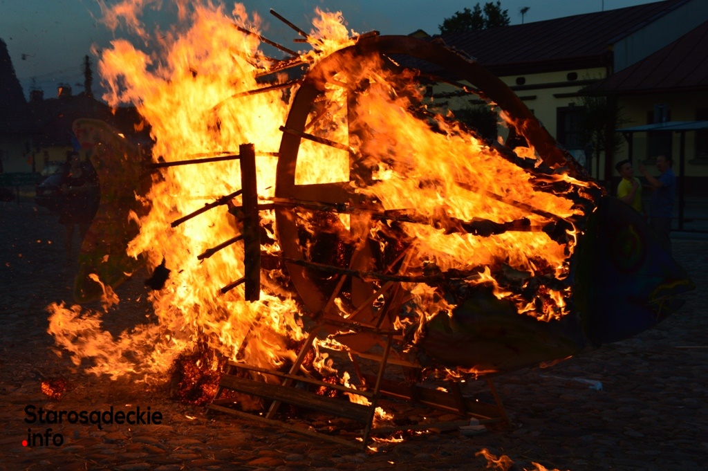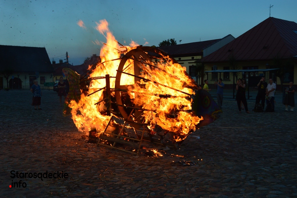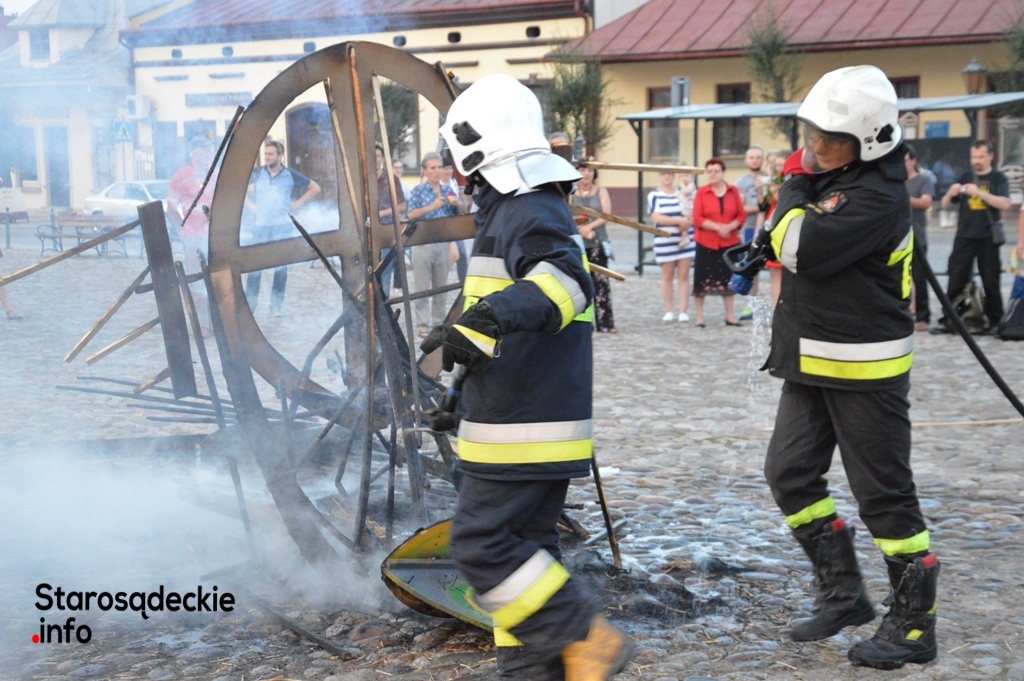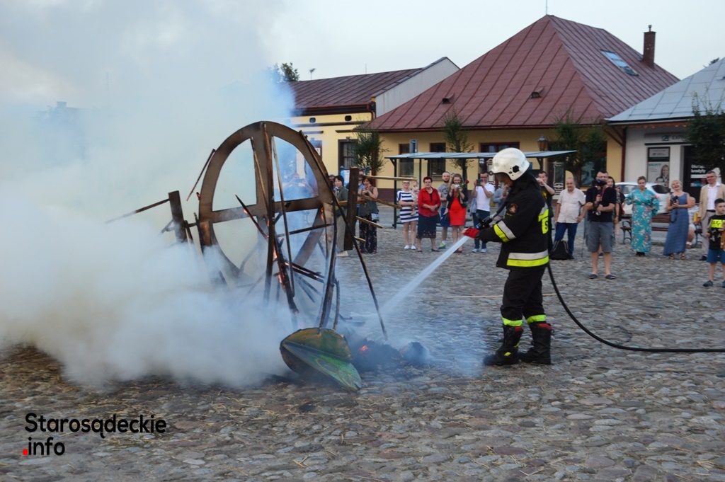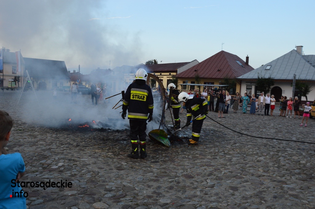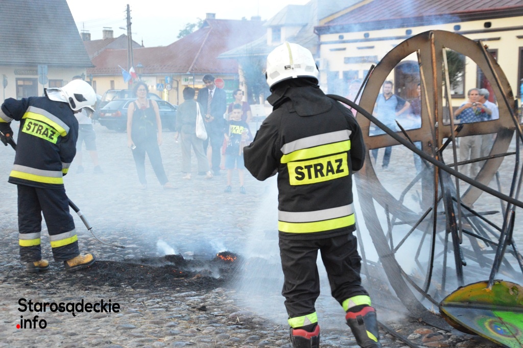Wielki ogień wzniecił Piotr Nowiński, syn śp. Teresy i Mariana Nowińskich, pomysłodawców i inicjatorów międzynarodowych plenerów malarskich w Starym Sączu. Wieczorne spalenie jednego z dzieł powstałych podczas pleneru to tradycja imprezy.  Był to ognisty finał imprezy z udziałem starosądeczan…i  druhów z miejscowej OSP, którzy czynnie uczestniczyli w performansie.
