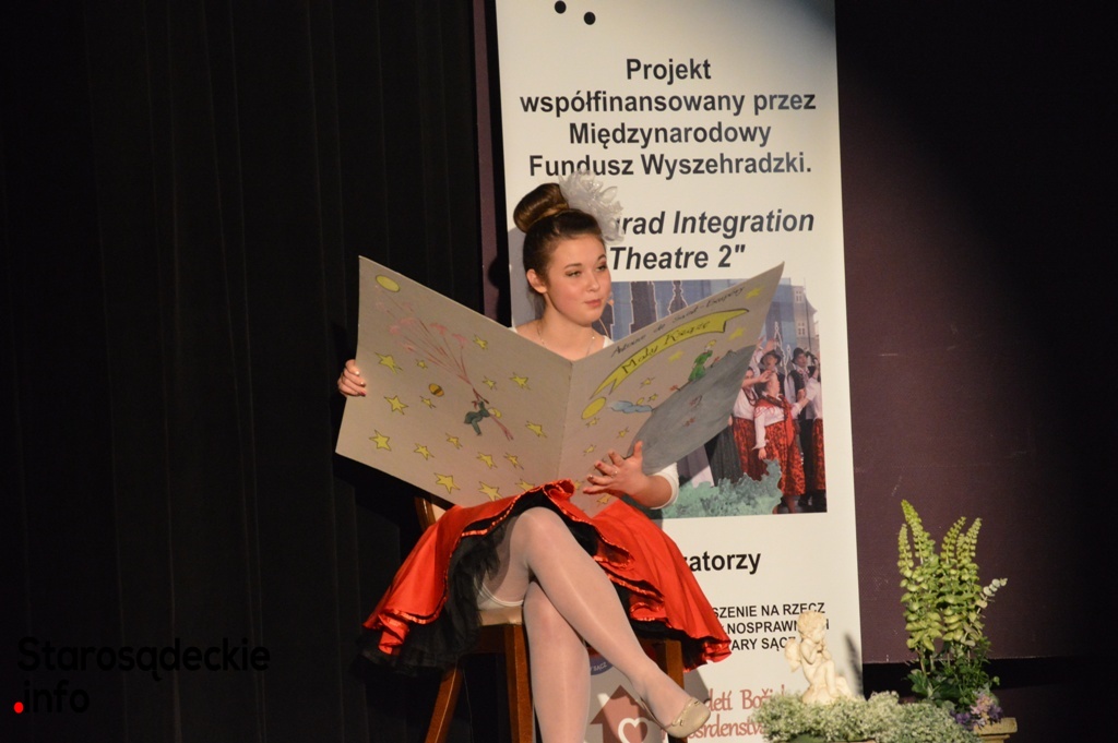 –Cieszymy się, że zechcieli Państwo spędzić dzisiejsze popołudnie w międzynarodowym towarzystwie –mówiła Anna Górz z „Gniazda” – to trudne przedsięwzięcie, jednak ponadczasowe treści zawarte w utworze „Małego Księcia” pozwoliły nam pokonać wszelkie bariery w tym bariery językowe i przygotować niezwykle sympatyczne przedstawienie.