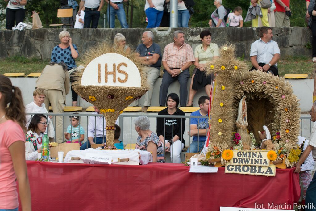 Obok przypisanych świętu plonów obrzędom, do tradycyjnych zwyczajów należy też konkurs na najpiękniejszy wieniec. Dożynkowe wieńce zjeżdżają z całego regionu do miejsca odbywania się imprezy. W tym roku w kategorii wieńca tradycyjnego główną nagrodę wraz z czekiem na kwotę 2 tys. zł otrzymała Grupa Wieńcowa „Brzeźniczanki” z Brzeźnicy (gm. Radłów, powiat tarnowski). Komisja konkursowa zadecydowała, że właśnie ta grupa wraz z wieńcem będzie reprezentowała Małopolskę podczas tegorocznych dożynek prezydenckich w Spale. W kategorii wieńca współczesnego zwyciężyła Grupa Wieńcowa „Smykowianie” ze Smykowa (gm. Radgoszcz, powiat dąbrowski), która również otrzymała 2 tys. zł.
