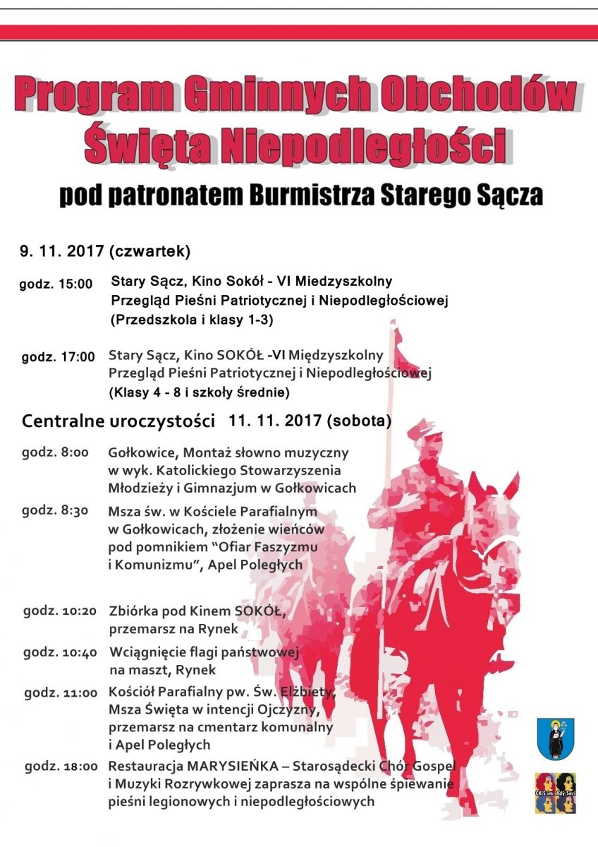 Już w sobotę (11 Listopada) w restauracji Marysieńka w Starym Sączu odbędzie się patriotyczne śpiewanie. Wieczór ten zakończy Gminne Obchody Święta Niepodległości w Starym Sączu. Pieśni patriotyczne i niepodległościowe będą radośnie rozbrzmiewać przy Chórze Gospel i Muzyki Rozrywkowej pod kierunkiem Moniki Rębilas.