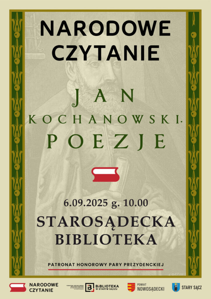 To wyjątkowe wydarzenie, organizowane pod patronatem Pary Prezydenckiej, już od lat łączy miłośników literatury w całym kraju. Tegoroczna edycja ponownie zgromadzi społeczność lokalną wokół wspólnego czytania jednego z najważniejszych dzieł polskiej literatury. W tym roku czytamy poezje Jana Kochanowskiego.