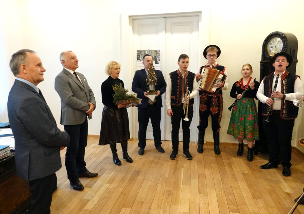 Budynek Starostwa Powiatowego w Nowym Sączu rozbrzmiewał wczoraj śpiewem kolęd. Z życzeniami świątecznymi przybyła młodzież z Zespołu Szkół Ponadpodstawowych w Nawojowej oraz Zespół Siennioki. Zaśpiewali staroście nowosądeckiemu Markowi Kwiatkowskiemu i wicestaroście Antoniemu Koszykowi.