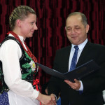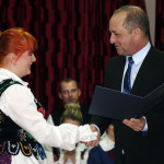 – Z okazji Jubileuszu 50-lecia działalności Regionalnego Zespołu „Dolina Popradu”, w podziękowaniu za szczególne zasługi na rzecz upowszechniania kultury ludowej na Sądecczyźnie, dbałość o zachowanie dziedzictwa regionalnego oraz przekazywanie młodemu pokoleniu umiłowania do Ziemi Ojczystej wręczam Pani Ewelinie Nosal Złote Jabłko Sądeckie – mówił starosta Marek Pławiak.