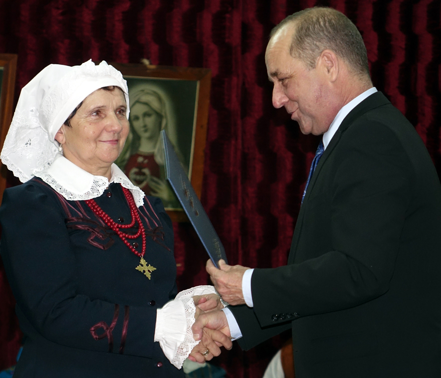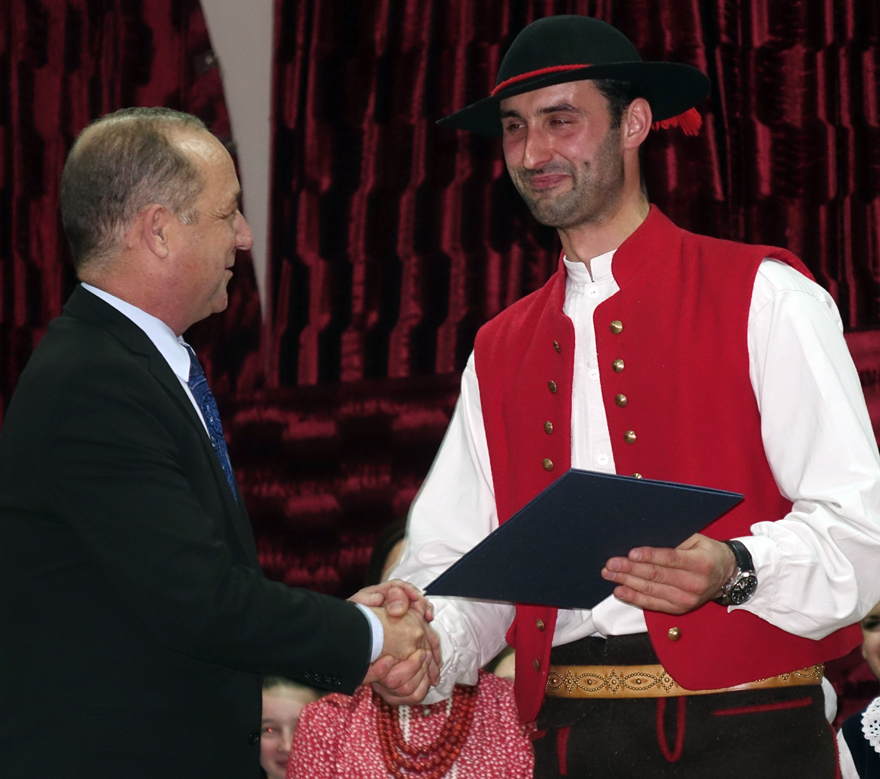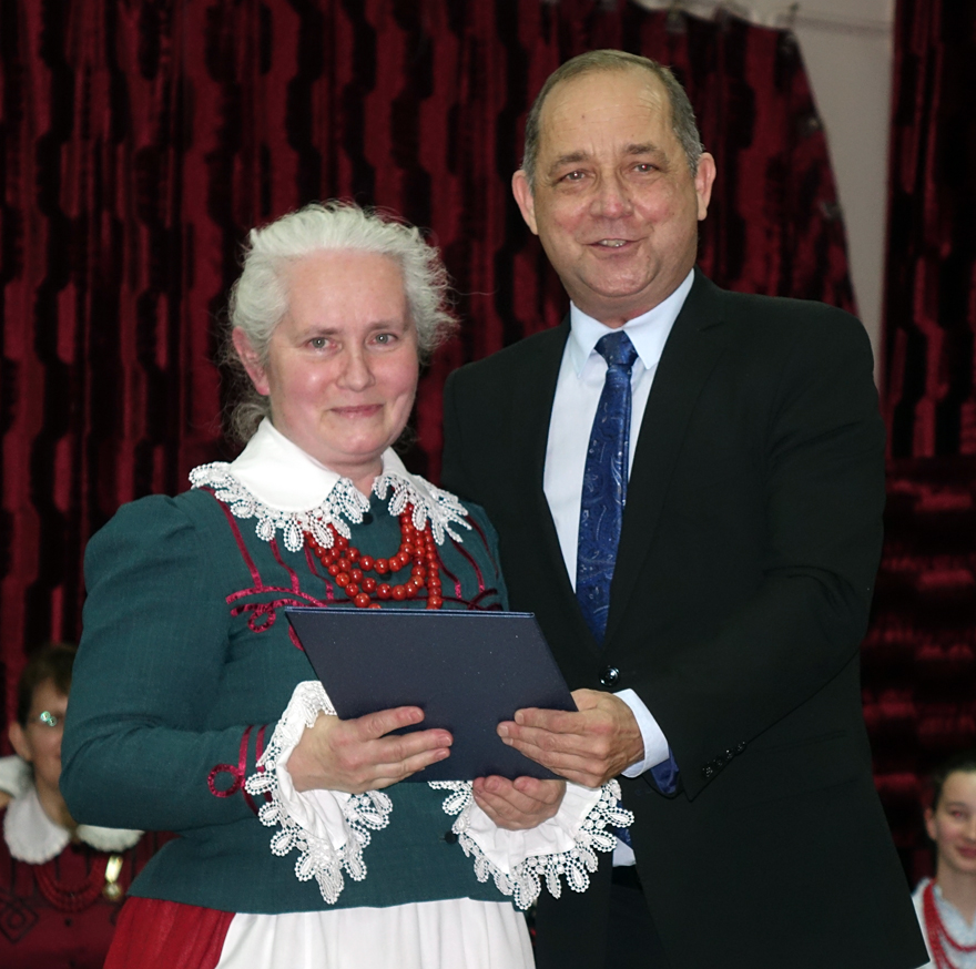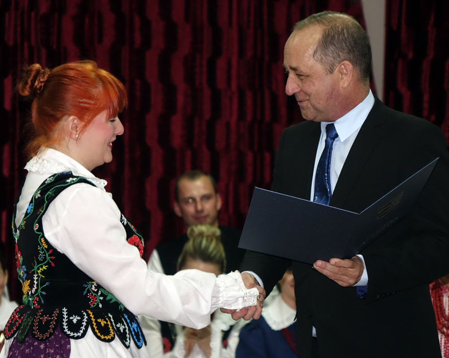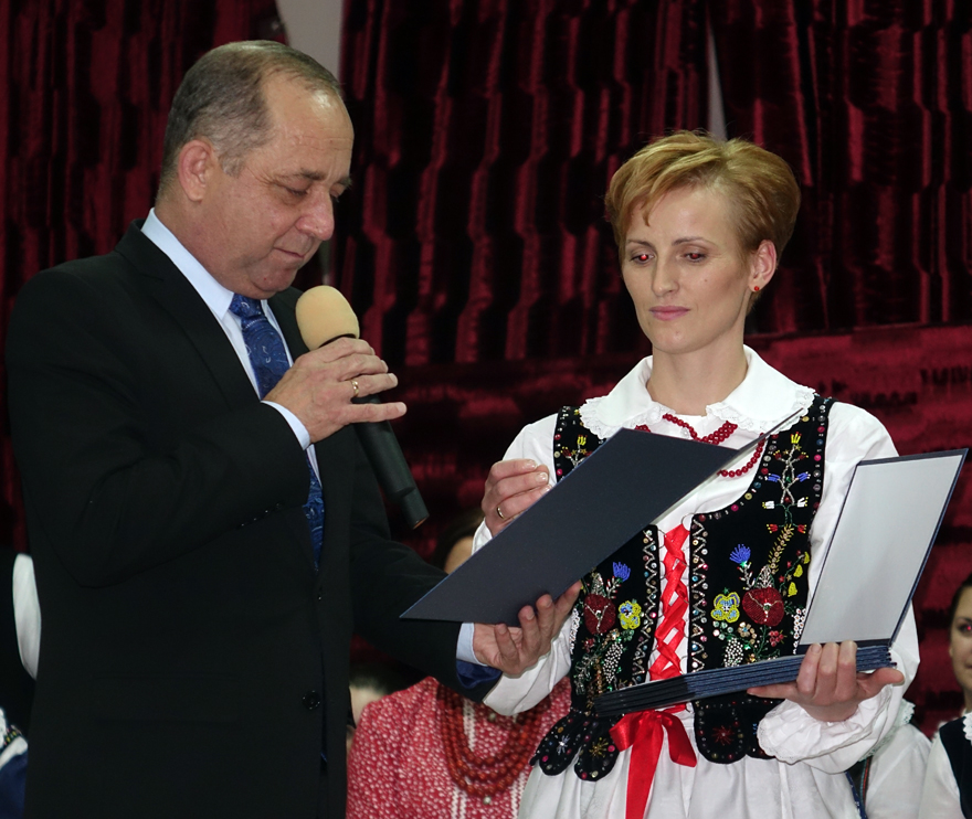 – Z okazji Jubileuszu 50-lecia działalności Regionalnego Zespołu „Dolina Popradu”, w podziękowaniu za szczególne zasługi na rzecz upowszechniania kultury ludowej na Sądecczyźnie, dbałość o zachowanie dziedzictwa regionalnego oraz przekazywanie młodemu pokoleniu umiłowania do Ziemi Ojczystej wręczam Pani Ewelinie Nosal Złote Jabłko Sądeckie – mówił starosta Marek Pławiak.