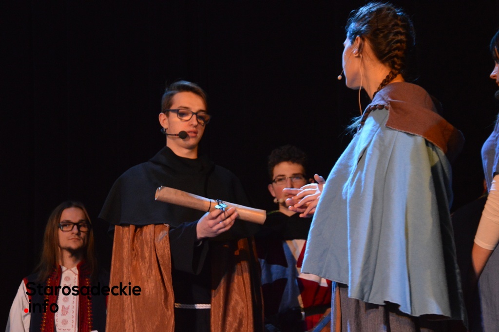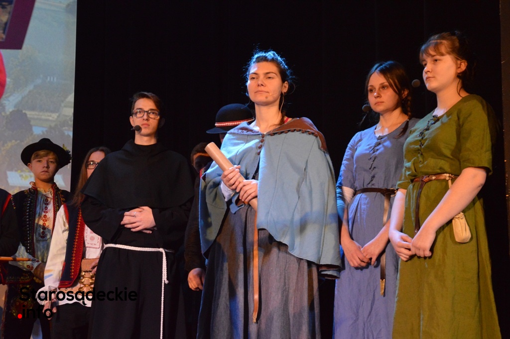 W niedzielne popołudnie na scenie Sokoła w Starym Sączu mogliśmy zobaczyć widowisko pt. „Żywot św. Kingi”. Młodzież z Zespołu Szkół Ponadgimnazjalnych z gościnnym udziałem uczniów Szkoły Podstawowej nr 1 i Szkoły Podstawowej nr 2 pod kierunkiem Wiesławy Majdy przybliżyła mieszkańcom historię patronki miasta.