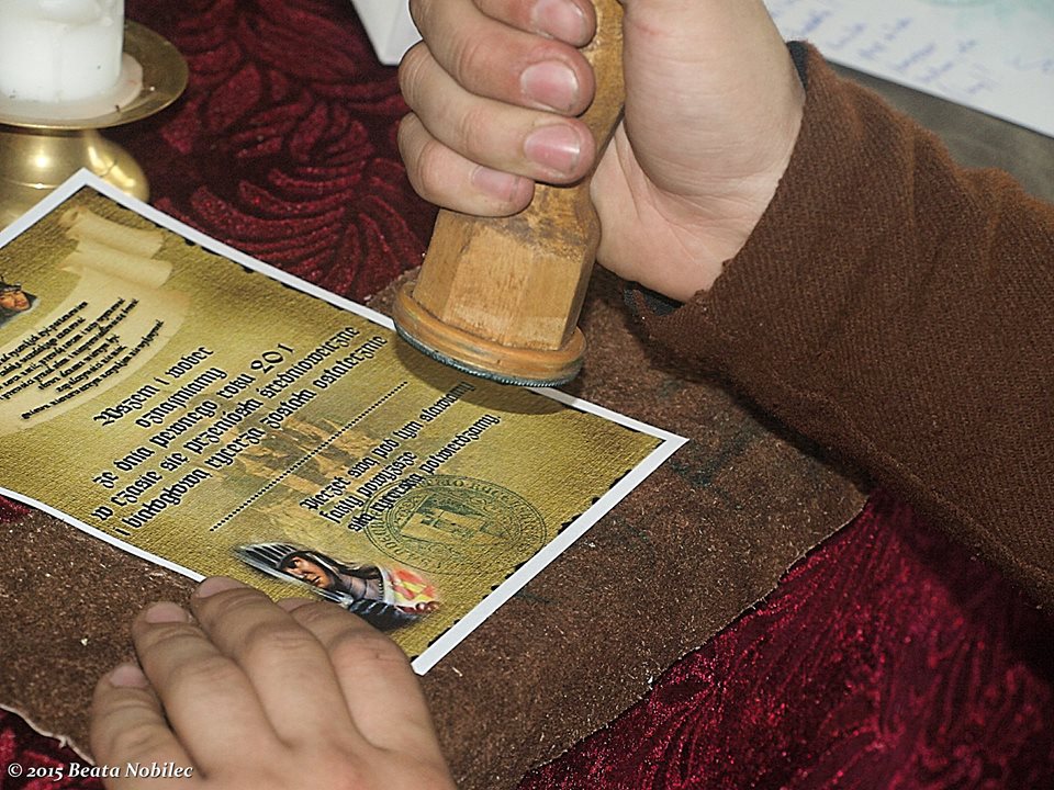 Gdy Kandydat przejdzie pierwszy etap, podczas oficjalnej uroczystości nadany mu zostaje glejt stwierdzający jego prawo do posługiwania się mianem Nowicjusza i nadający mu nowy zakres obowiązków, między innymi odpowiedzialność za daną prace w obozowisku oraz pełnienie obowiązków straży obozowej i grodowej. Nowicjusz także powinien zakupić sobie bądź uszyć na modłę średniowieczną tzw. „przeszywanicę”, specjalny gruby pikowany kaftan która jest pierwszą częścią zbroi, oraz skórzane lub wytworzone z kolczugi rękawice ochronne do walki drewnianym mieczem i tarczą. Tak uzbrojony Kandydat może być odpowiedzialny za zadania porządkowe i pomoc przy realizacji tzw. „zabaw plebejskich”, gdzie prezentujemy średniowieczny sposób spędzania wolnego czasu i zachęcamy widownię do wspólnej zabawy.