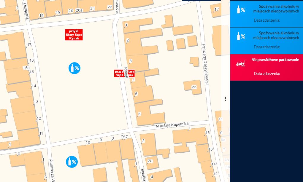 Warto podkreślić, że przez to innowacyjne narzędzie każdy obywatel ma możliwość aktualizowania informacji na mapie. Zgłosić zagrożenie można m.in. poprzez stronę internetową Komendy Miejskiej Policji w Nowym Sączu, na której, w panelu po prawej stronie, znajduje się przekierowanie do interaktywnej Mapy Zagrożeń Bezpieczeństwa. Wystarczy zaznaczyć miejsce na mapie i wybrać rodzaj zagrożenia, np. „spożywanie alkoholu w miejscach publicznych”, „akty wandalizmu”, „nieprawidłowe parkowanie”, „przekraczanie dozwolonej prędkości” i wiele innych. Od tej pory zgłoszenie będzie widoczne na mapie, podobnie jak jego status (nowe, weryfikacja, potwierdzone lub niepotwierdzone). Zgłoszenia są anonimowe – nie trzeba podawać swoich danych. Następnie Policja będzie weryfikować wszystkie sygnały.