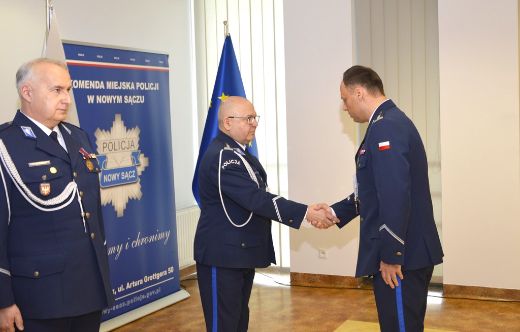 29 lutego br. w sali konferencyjnej Komendy Miejskiej Policji w Nowym Sączu zorganizowano uroczystą zbiórkę z okazji przekazania jednostki przez Komendanta Miejskiego Policji w Nowym Sączu w związku z jego awansem do Komendy Głównej Policji.