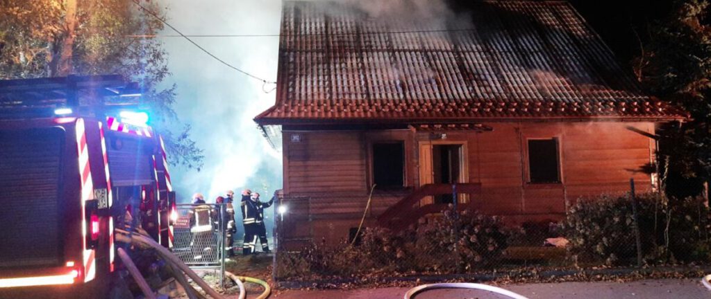 –Po przybyciu na miejsce zdarzenia ustalono, że paliło się całe poddasze budynku mieszkalnego –relacjonują strażacy – Ogień wydostawał się na zewnątrz.