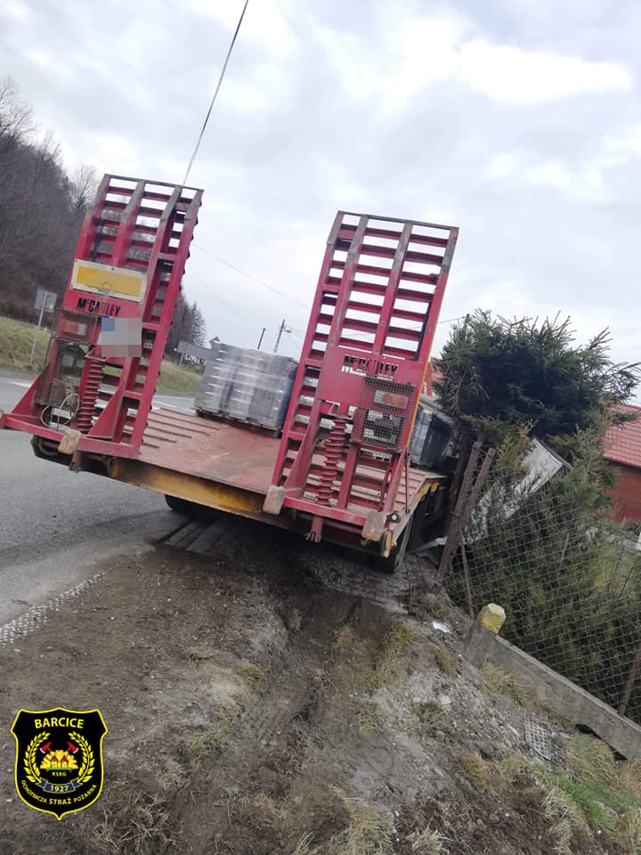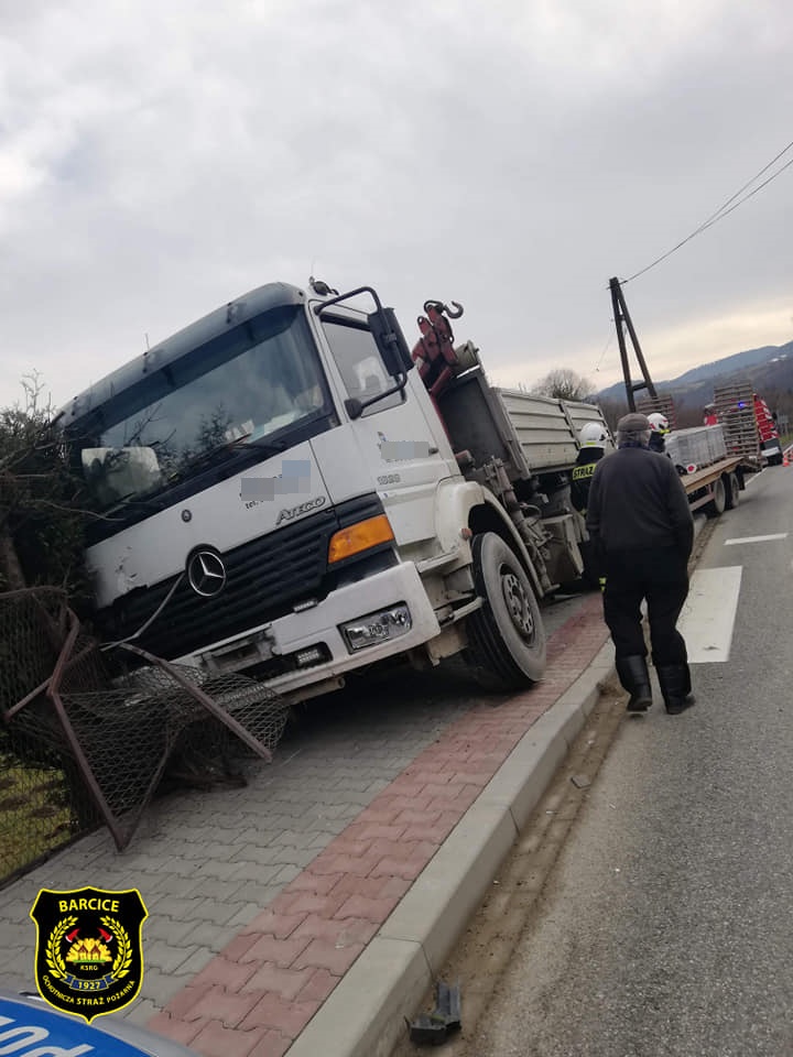 –Po przyjeździe na miejsce zdarzenia ustalono, że samochód ciężarowy marki Mercedes-Benz zjechał z drogi uderzając w ogrodzenie posesji. W wyniku zdarzenia kierowca nie doznał żadnych obrażeń. Działania strażaków polegały na zabezpieczeniu miejsca zdarzenia, kierowaniu ruchem drogowym oraz sprawdzeniu samochodu pod kątem wycieków. Na czas prowadzonych działań wstrzymano ruch na jednym pasie drogi.Poinstruowano kierowcę o konieczności rozładunku towaru oraz wyciągnięciu pojazdu z pobocza. Na miejscu pozostał zastęp OSP Barcice w celu zabezpieczenia miejsca zdarzenia na czas prac rozładunkowych -relacjonują strażacy z PSP Nowy Sącz.