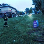 W pomieszczeniach suteren znajdowały się dwie butle 11kg na gaz propan – butan, które zostały wyniesione z budynku. Otwarto okna na piętrze w celu przewietrzenia budynku. Tlące się elementy przelano wodą.