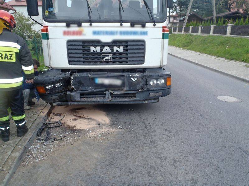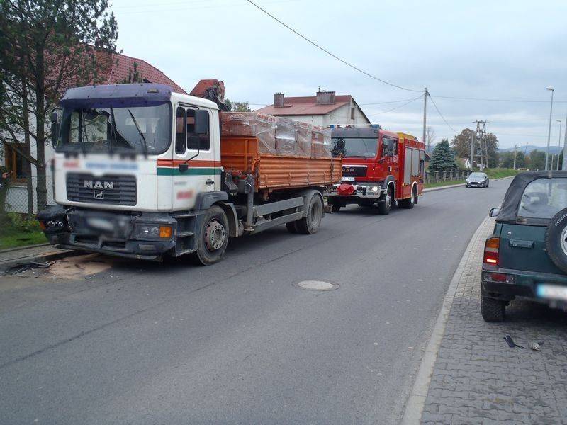 Wczoraj (8 października) wczesnym popołudniem kierujący samochodem Suzuki Vitara poszedł na czołówkę z ciężarowym Manem. Na szczęście kierowcy nic się nie stało.