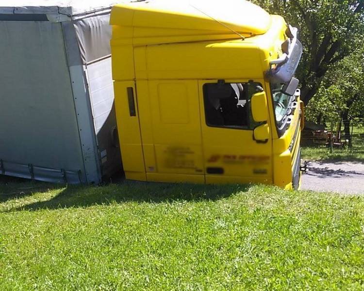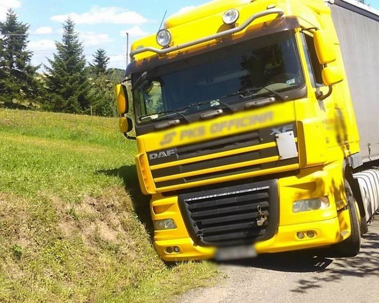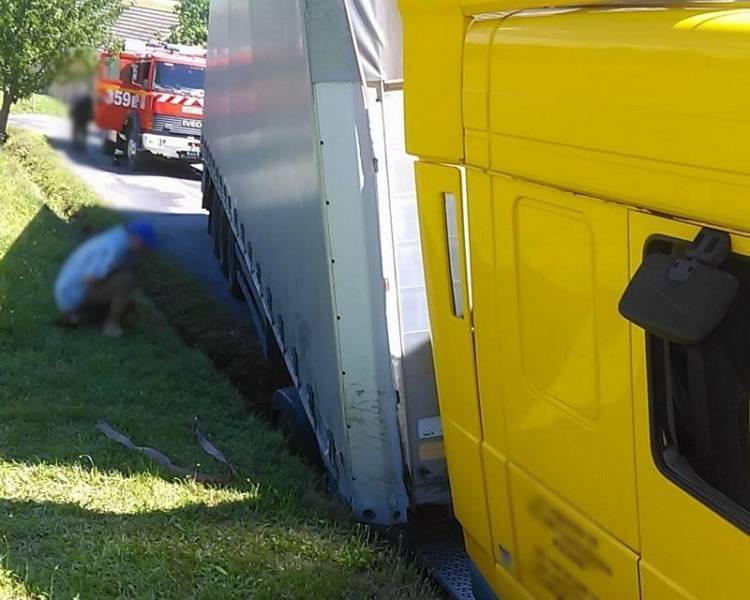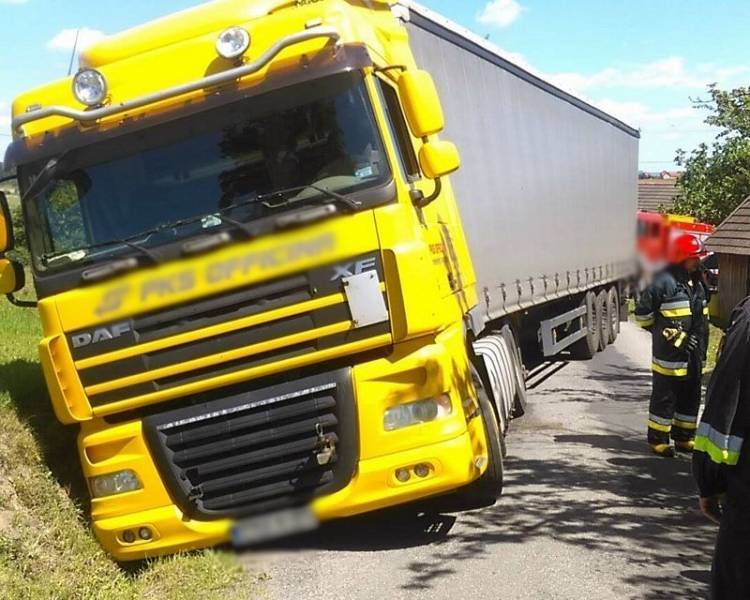 Brzezna. Ciężarówka „zsunęła” się z drogi