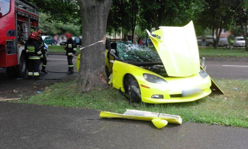 Dzisiaj (1 lipca) kilka minut przed godziną 13:00 samochód osobowy marki Chevrolet Corvette uderzył stroną pasażera w drzewo rosnące na przydrożnym pasie zieleni. Wszystko rozegrało się na ulicy Barskiej w Nowym Sączu. Nawierzchnia jezdni była śliska a jadący szybko kierowca stracił panowanie nad sportowym autem. Kierowca i pasażer zostali uwięzieni w pojeździe.