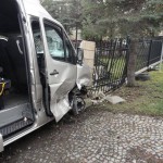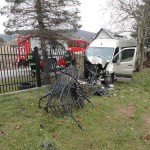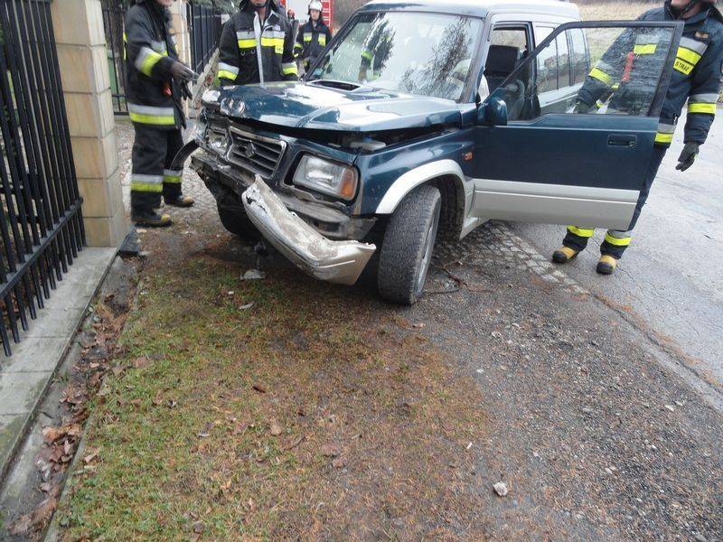 Chomranice -w wyniku zderzenia z osobówką zniszczył ogrodzenie