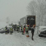 Pozostałe osoby znajdowały się w samochodach, chroniąc się przed opadami śniegu lub poza pojazdami. Ustalono również, że dwa samochody znajdowały się w rowie, jeden na poboczu a trzy inne na jednym pasie ruchu. Z samochodów nie nastąpiły wycieki.