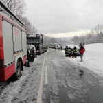Po przybyciu na miejsce zdarzenia OSP Cieniawa i OSP Ptaszkowa stwierdzono, że droga krajowa 28 była całkowicie zablokowana. Ze względu na intensywne opady śniegu oraz bardzo śliską nawierzchnię zastępy straży pożarnej miały problem z dotarciem na miejsce zdarzenia. W celu manewrowania samochodami pożarniczymi była konieczność założenia łańcuchów.