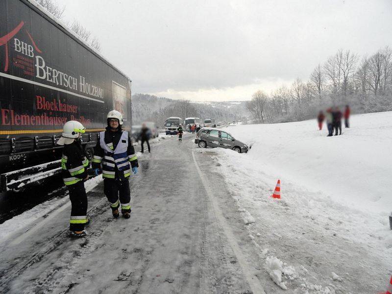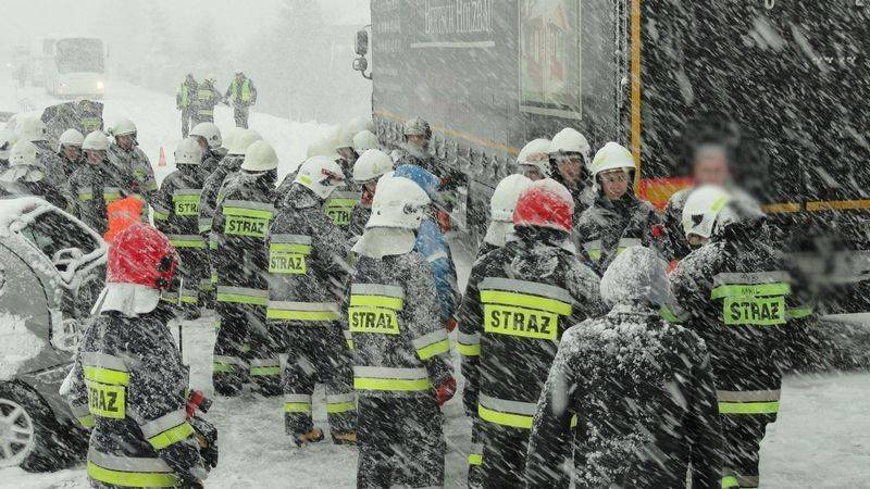Pozostałe osoby znajdowały się w samochodach, chroniąc się przed opadami śniegu lub poza pojazdami. Ustalono również, że dwa samochody znajdowały się w rowie, jeden na poboczu a trzy inne na jednym pasie ruchu. Z samochodów nie nastąpiły wycieki.