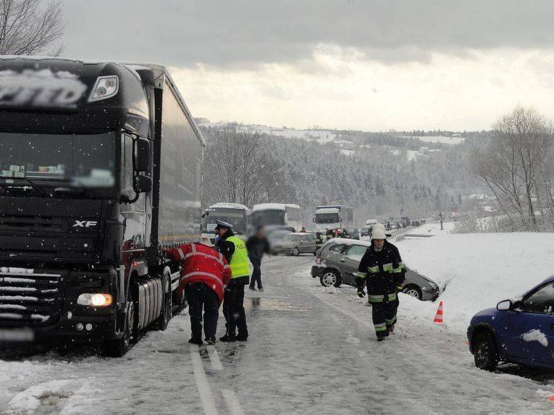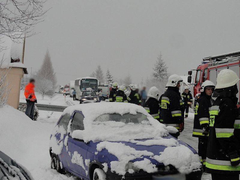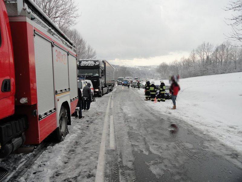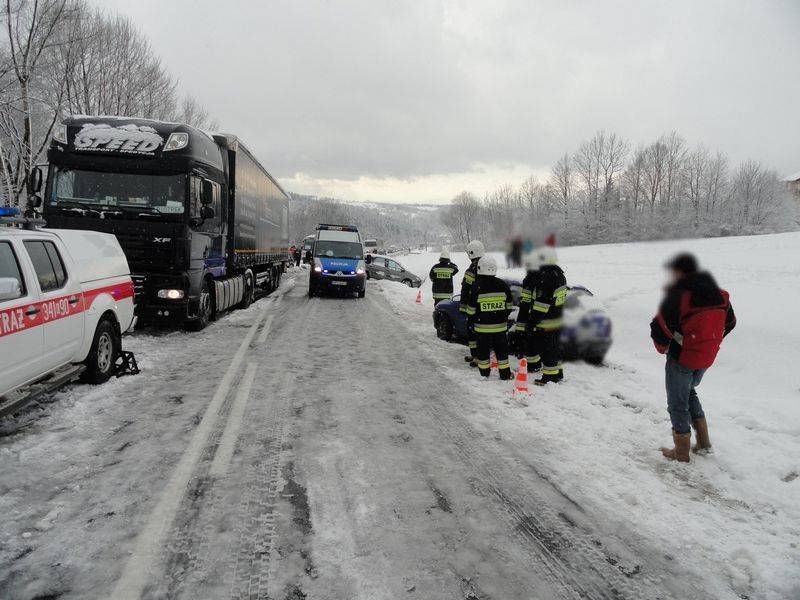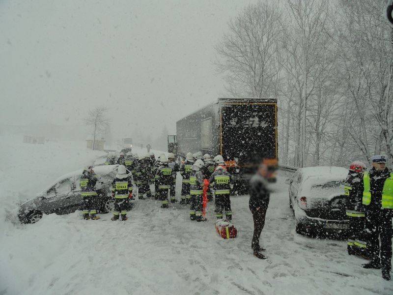 Po przybyciu na miejsce zdarzenia OSP Cieniawa i OSP Ptaszkowa stwierdzono, że droga krajowa 28 była całkowicie zablokowana. Ze względu na intensywne opady śniegu oraz bardzo śliską nawierzchnię zastępy straży pożarnej miały problem z dotarciem na miejsce zdarzenia. W celu manewrowania samochodami pożarniczymi była konieczność założenia łańcuchów.