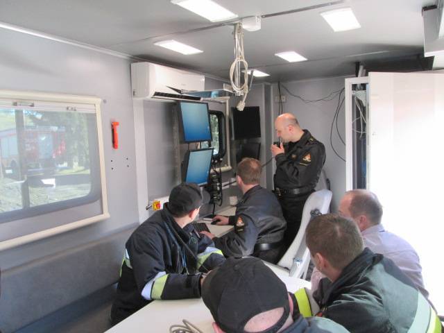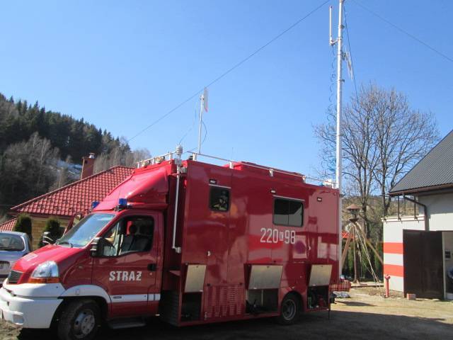 Istotnym elementem ćwiczeń było zapoznanie się z możliwościami samochodu dowodzenia i łączności, który znajduje się na wyposażeniu Komendy Wojewódzkiej PSP w Krakowie. W ramach ćwiczeń samochód dowodzenia i łączności został rozstawiony przy remizie OSP w Szczawniku i tam w sposób praktyczny została zorganizowana łączność na potrzeby prowadzonych działań ratowniczych.